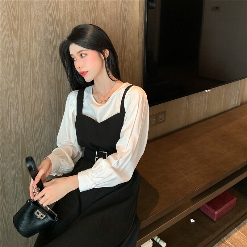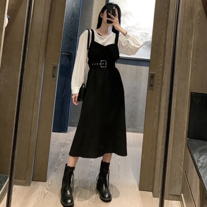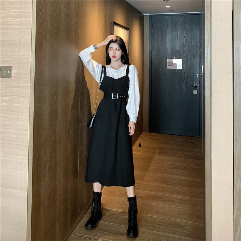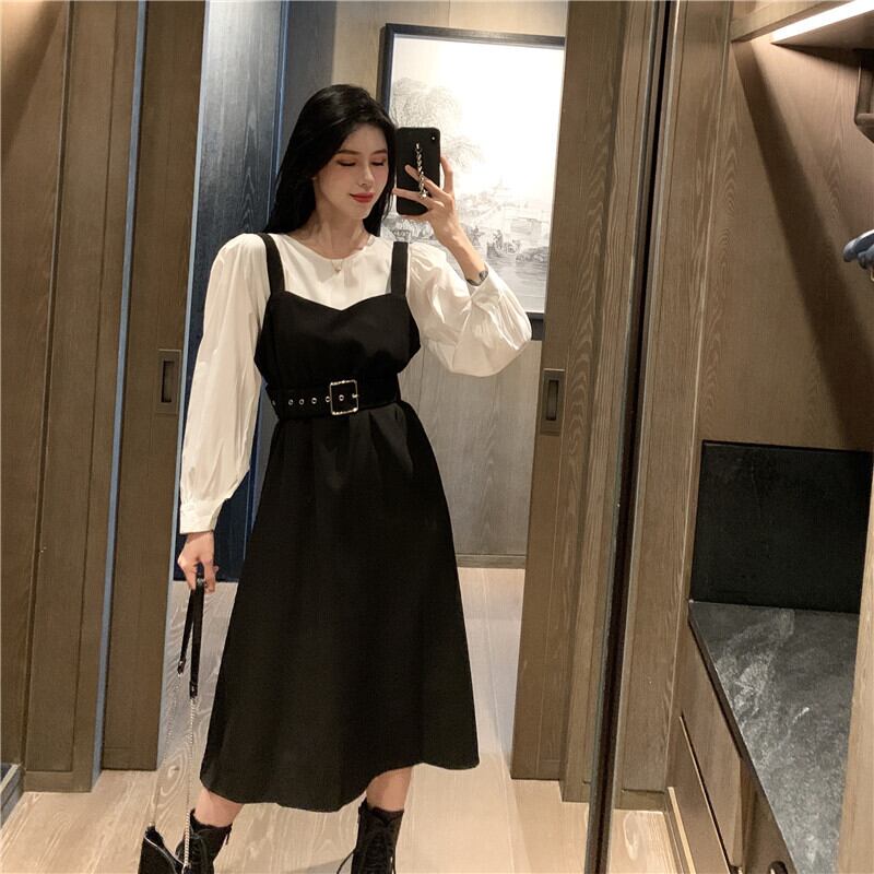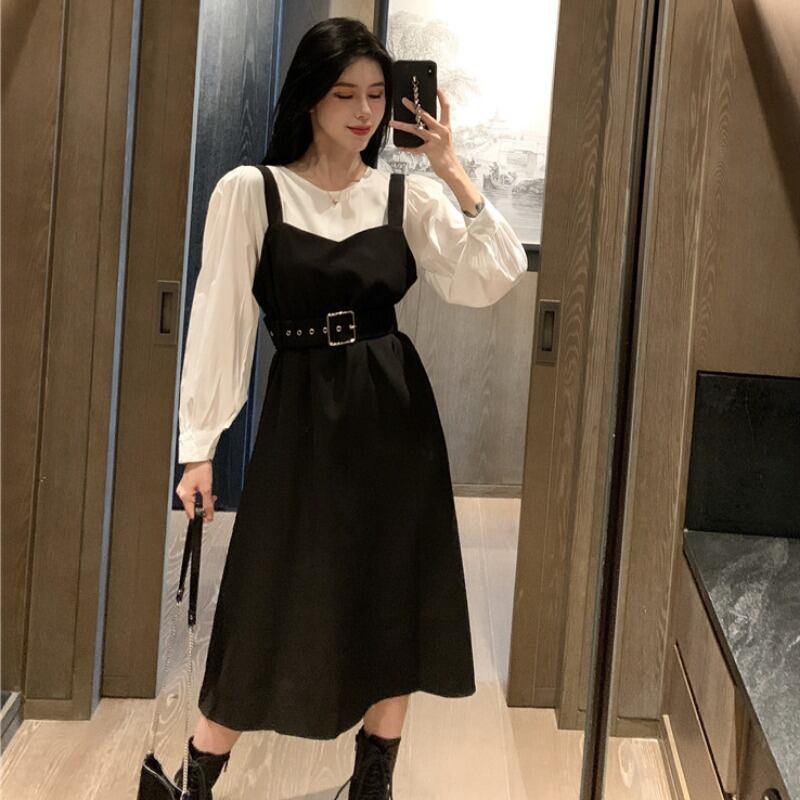 スプリングオータムスタイルルーズホワイトシャツ ウェストドレス ロング 春物 秋物 1号婦人82461102007