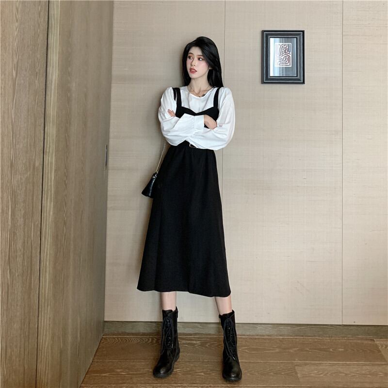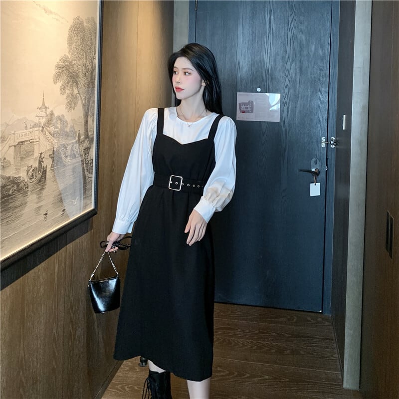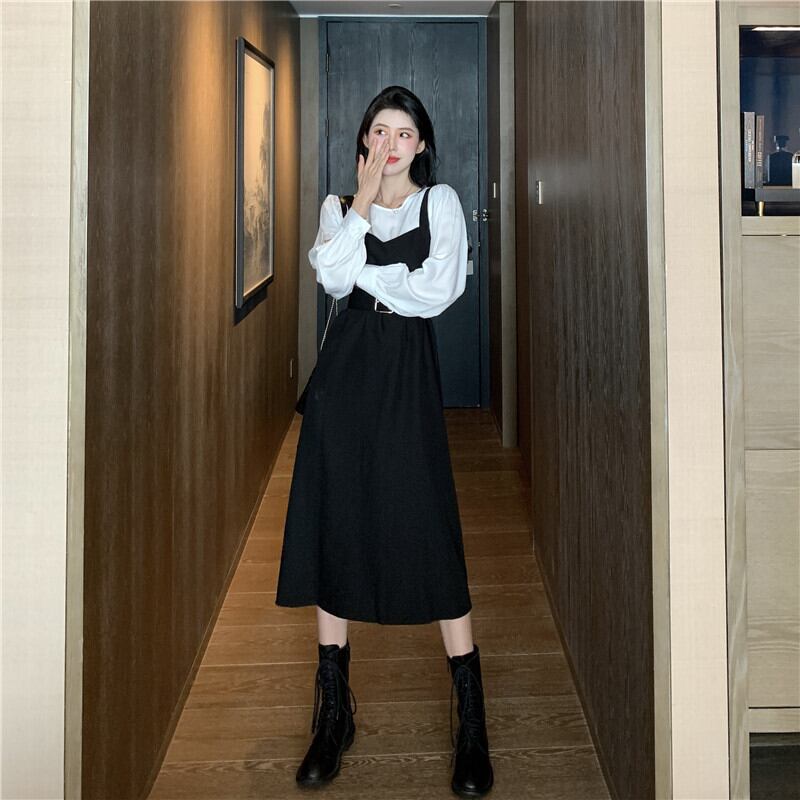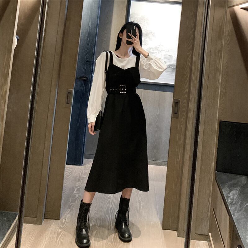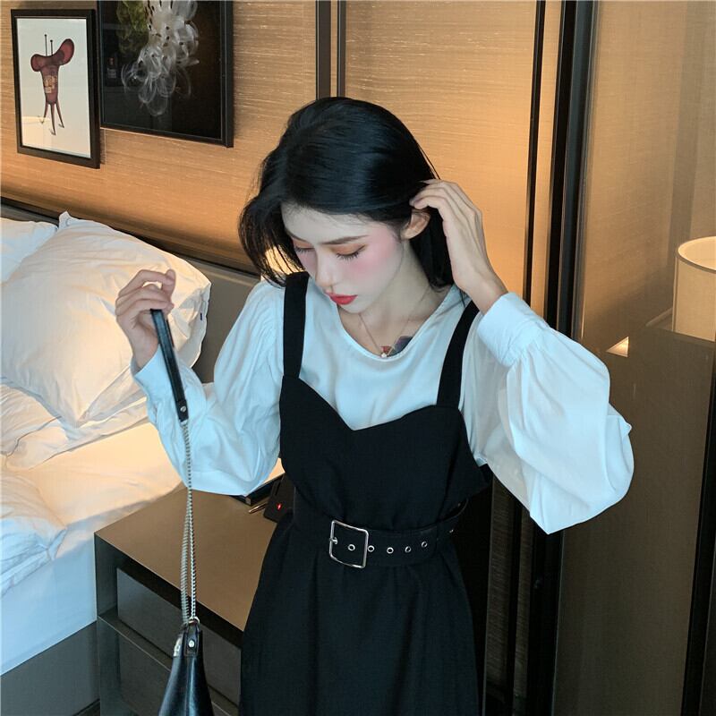 スプリングオータムスタイルルーズホワイトシャツ ウェストドレス ロング 春物 秋物 1号婦人82461102007