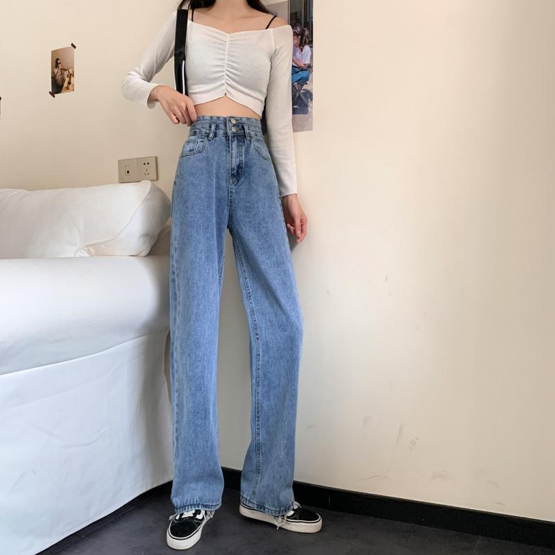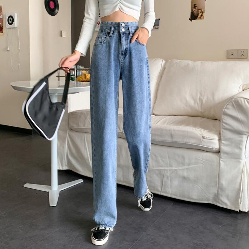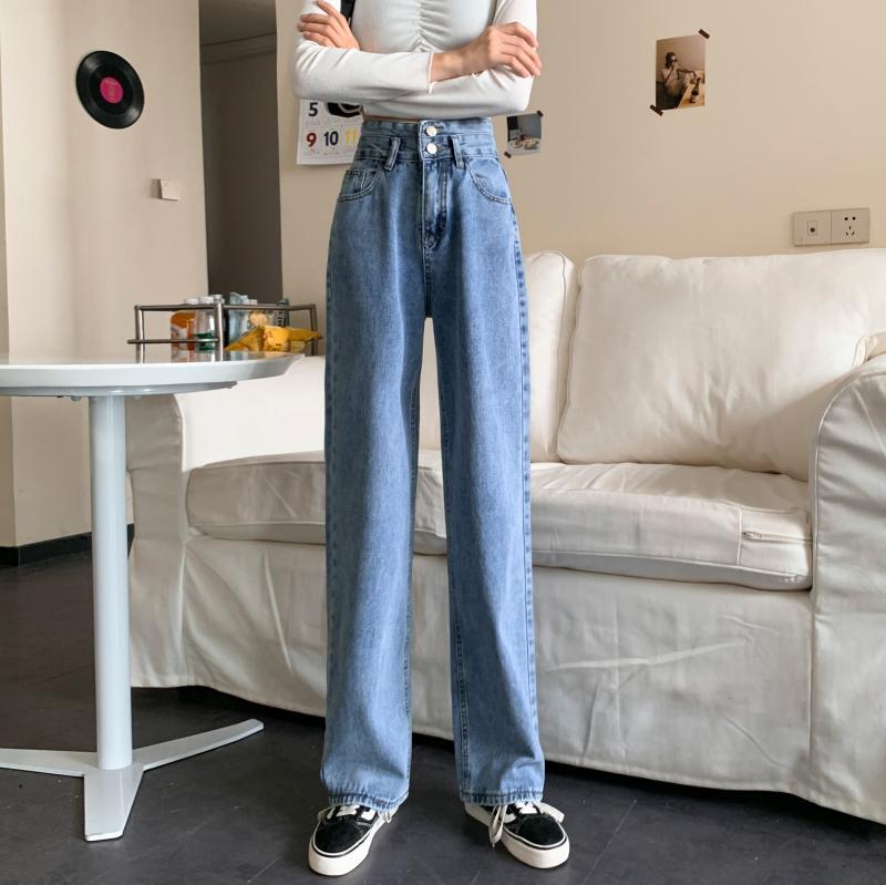 スタンダードハイウェストウェストジーンズ レディーススプリングルーズパンツ 薄手ロング レトロ 春物 1号婦人1774369897