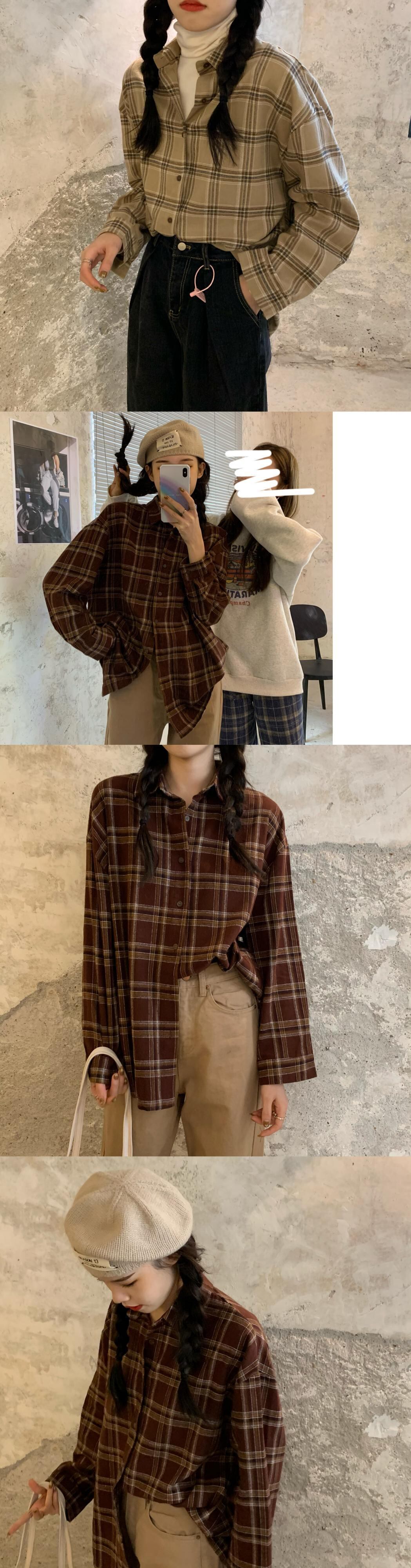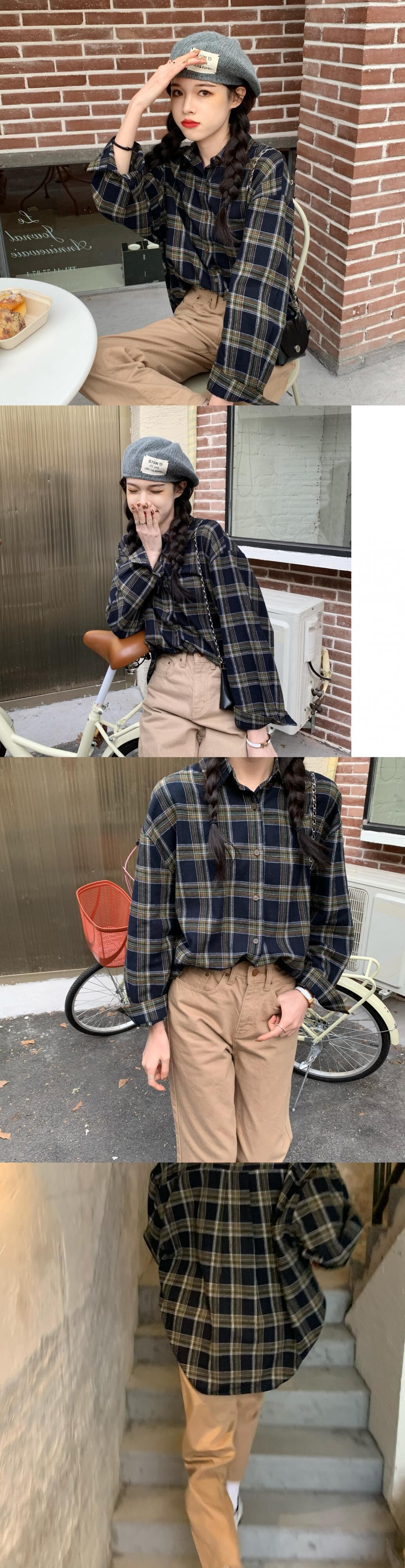 シャツ スプリングオータムカジュアル格子柄ルーズジャケット ロング 春物 秋物 1号婦人17096823063