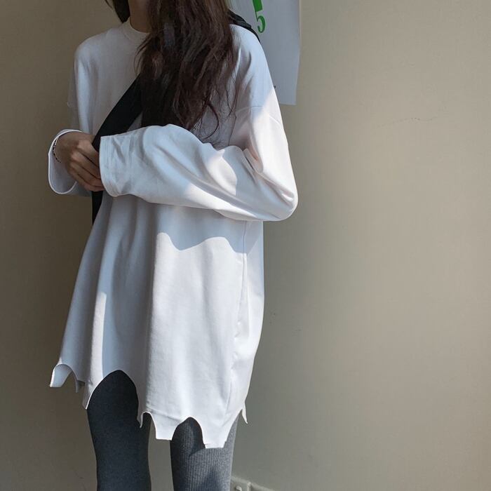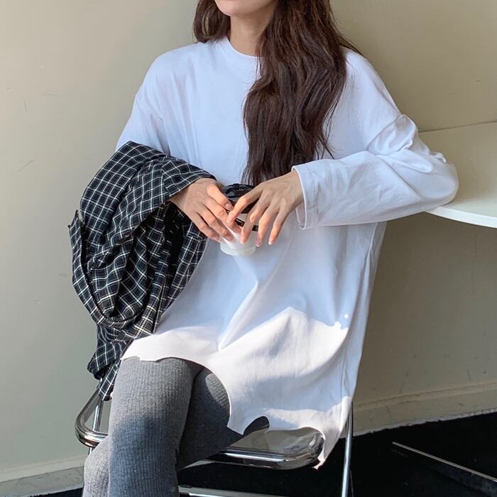 ホワイトTシャツ シャツ オータムウィンタートップス ロング スプリング 春物 秋物 冬物 1号婦人28760202890