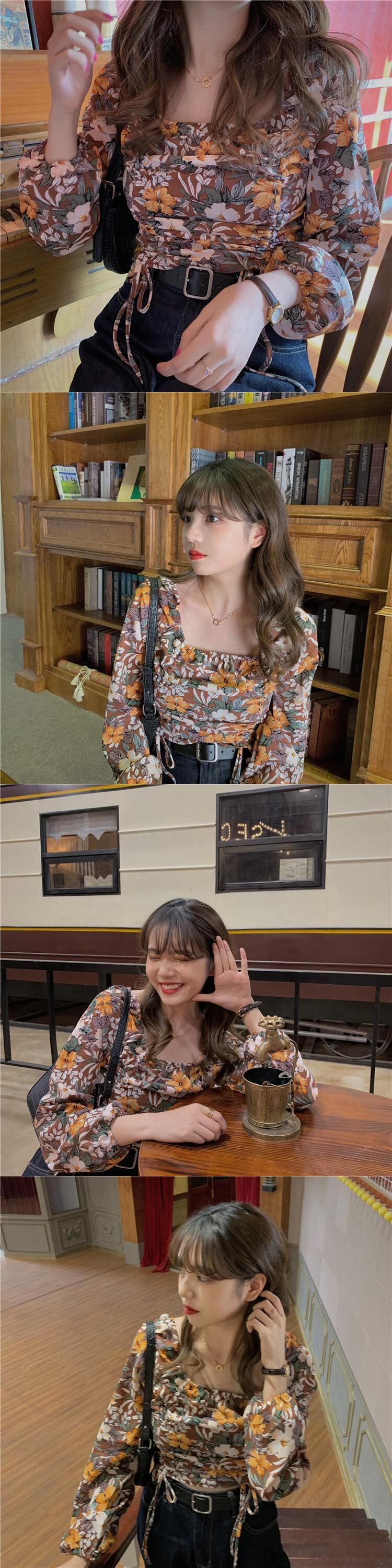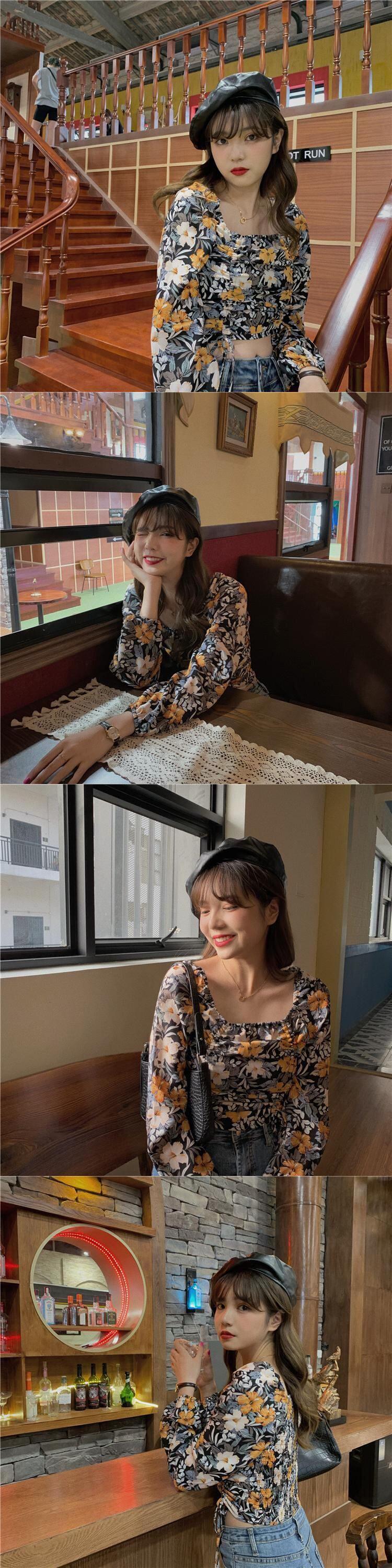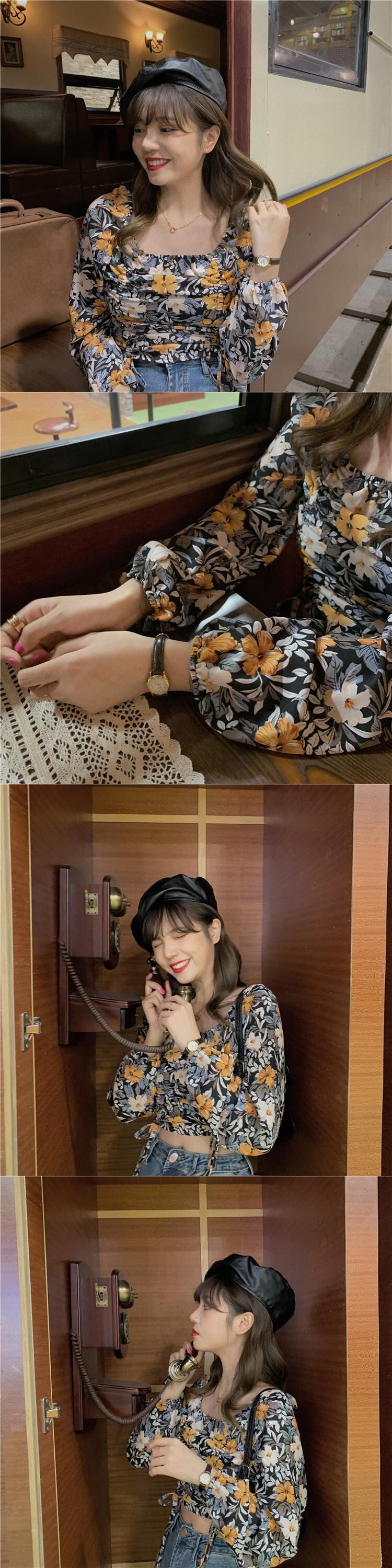 スプリングオータムスタンダードフローラルショートシャツ トップス レディース レトロ 春物 秋物 花柄 スクウェア 1号婦人13734877035