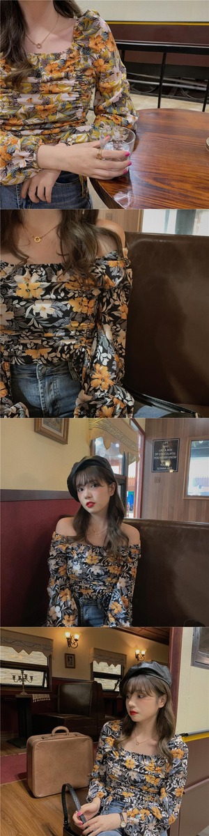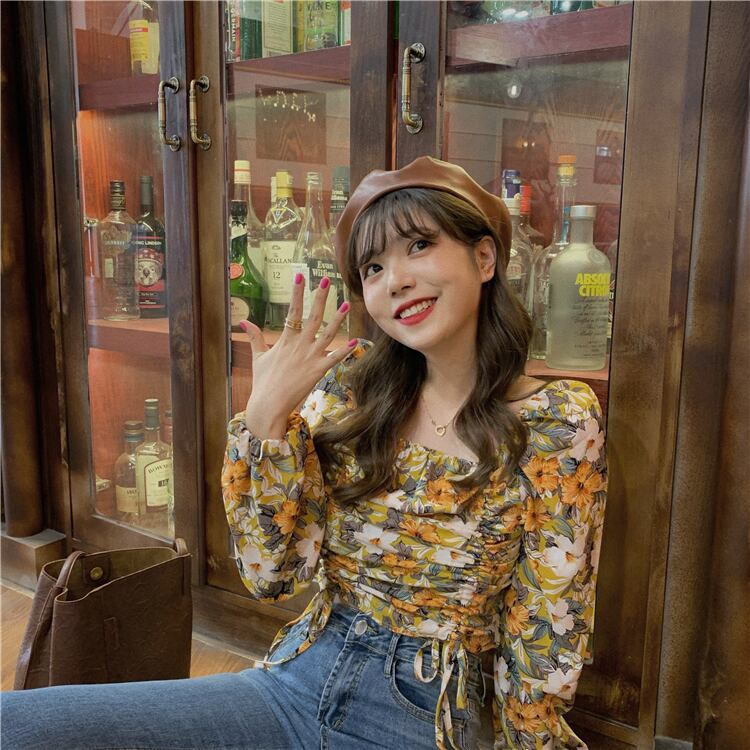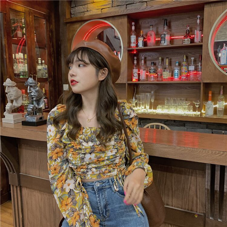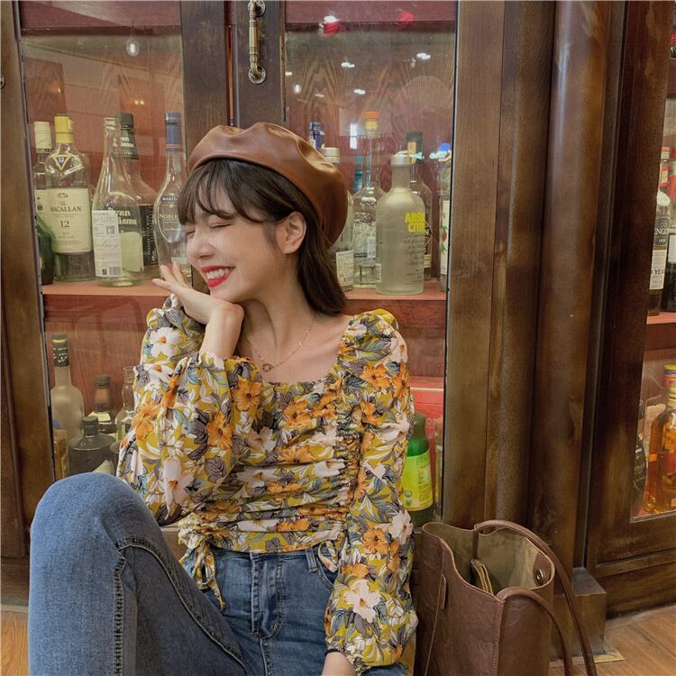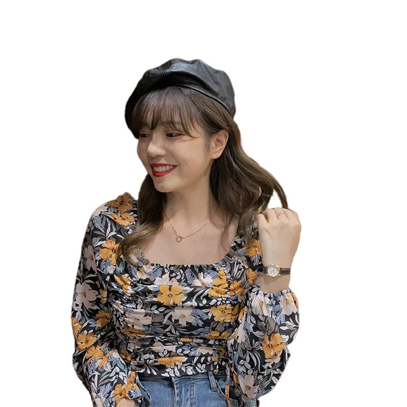 スプリングオータムスタンダードフローラルショートシャツ トップス レディース レトロ 春物 秋物 花柄 スクウェア 1号婦人13734877035