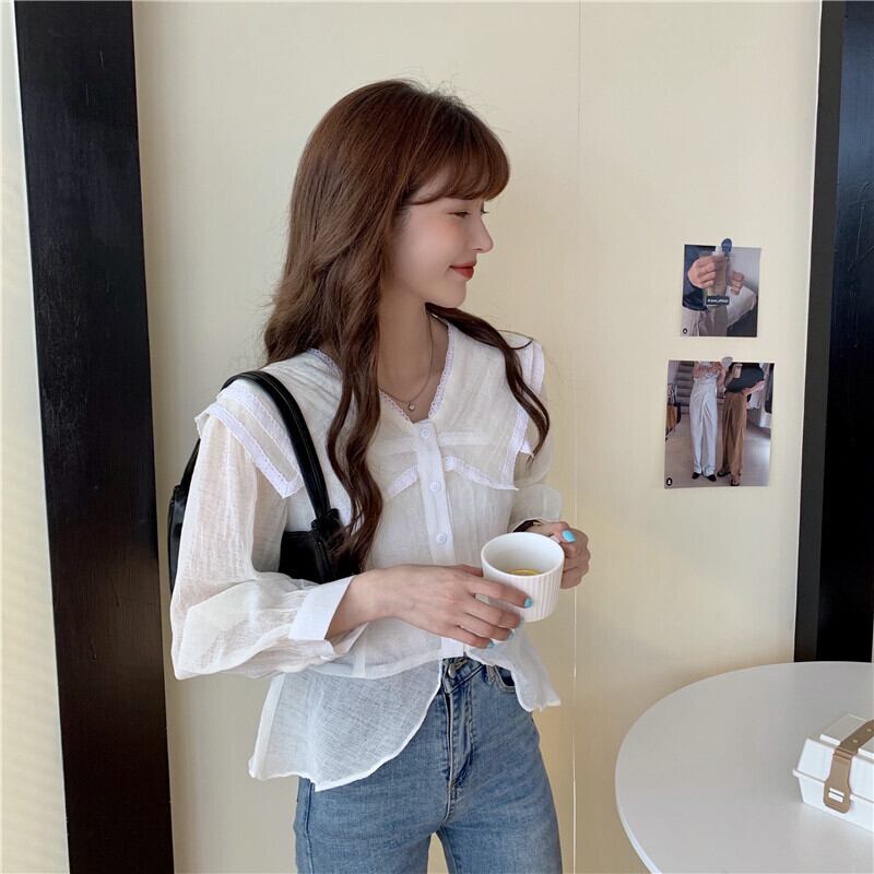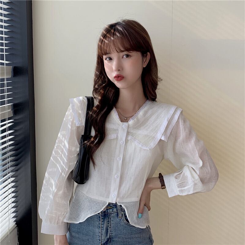 カラーシャツ スプリングオータムホワイト ロング 春物 秋物 1号婦人96362959789
