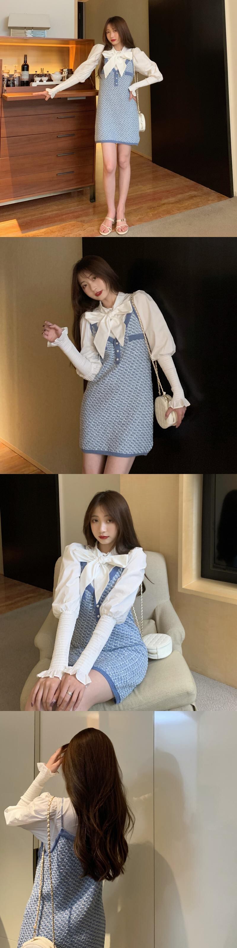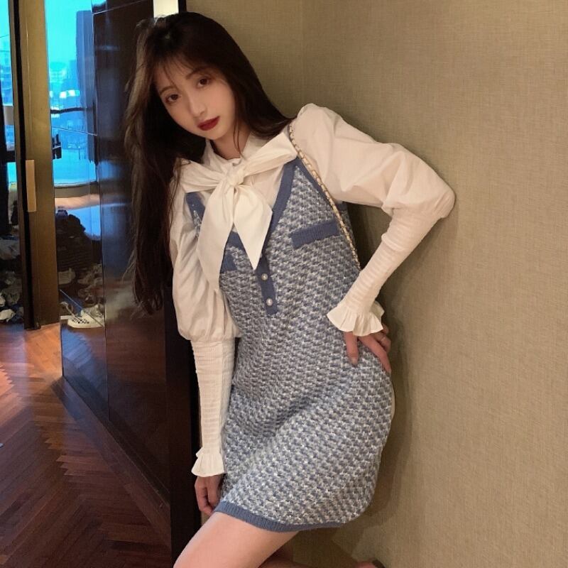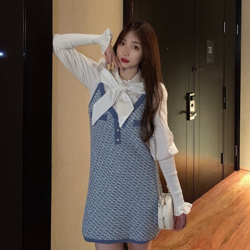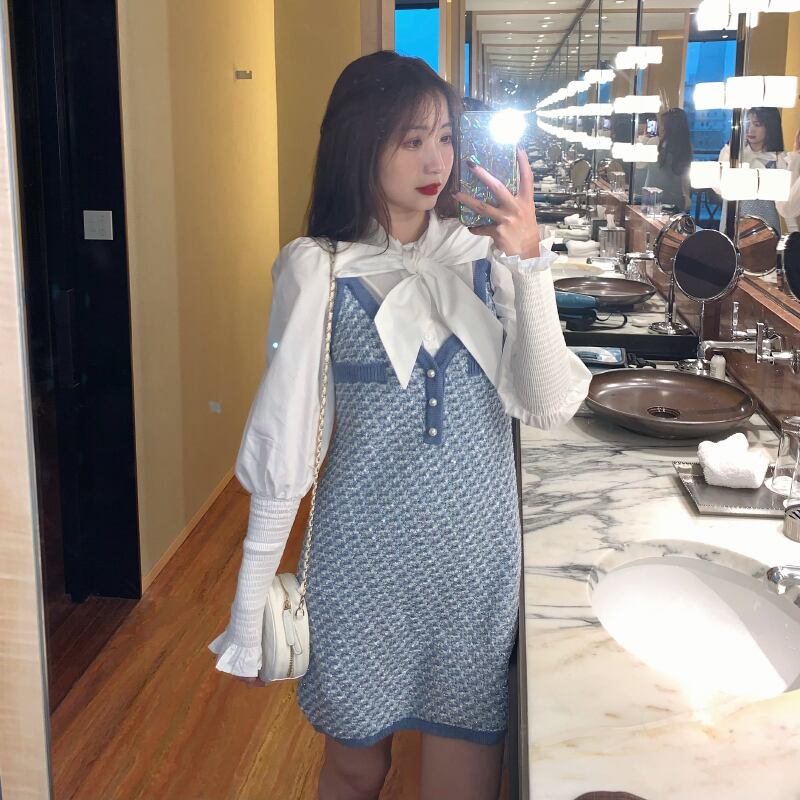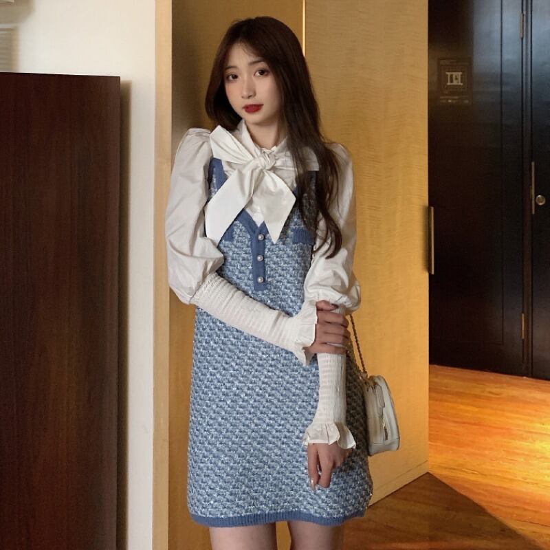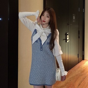 スタイルレディーススタンダードスプリングオータムリボンホワイトシャツ ドレス レトロ 春物 秋物 1号婦人45262555040