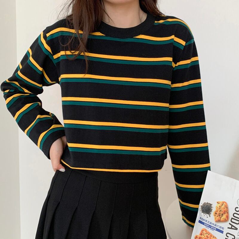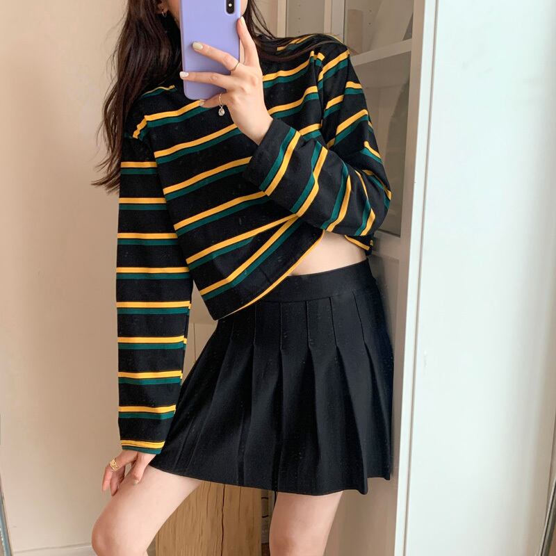 スタイルスタンダードスプリングオータムストライプTシャツ トップス プリーツスカート ロング レトロ 春物 秋物 1号婦人4831399704