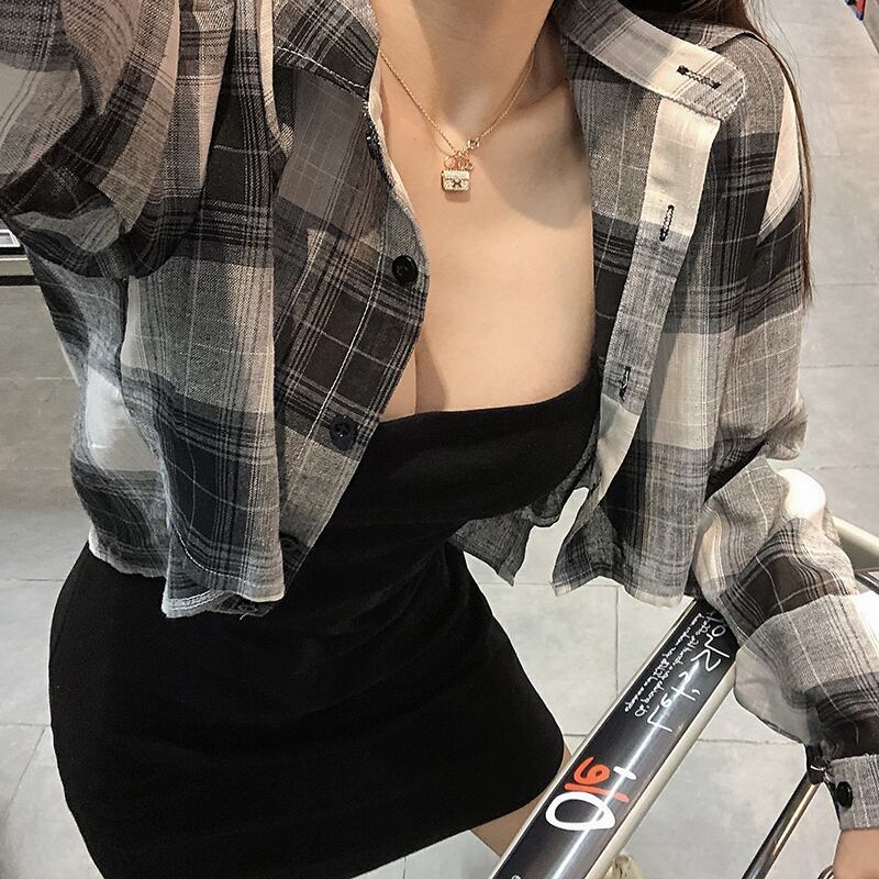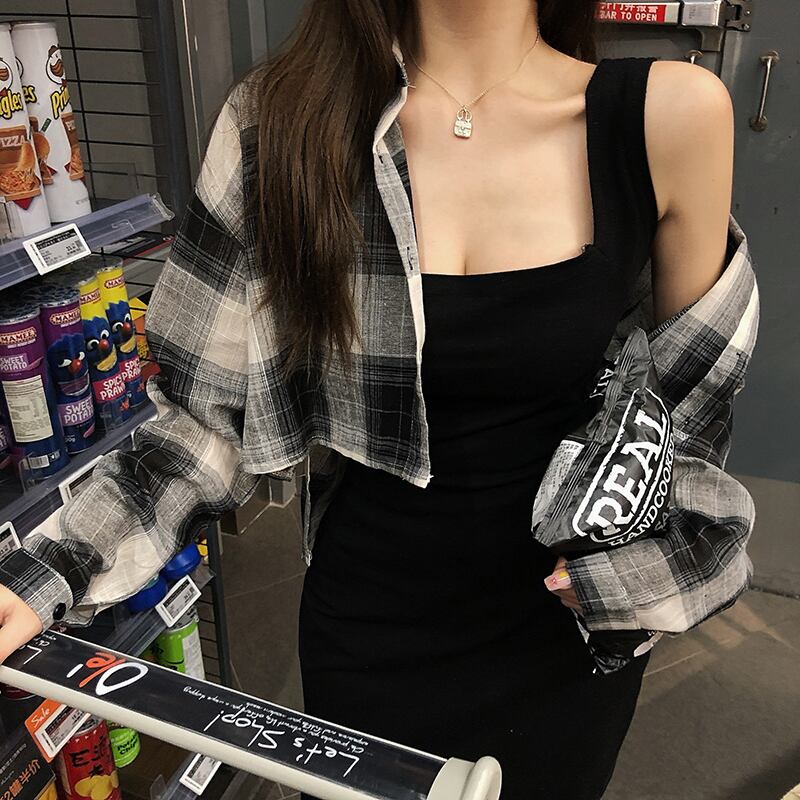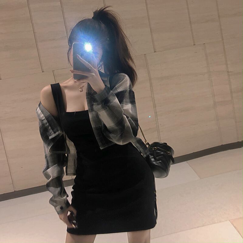 色:ブラックサスペンダースカート,格子縞のシャツ