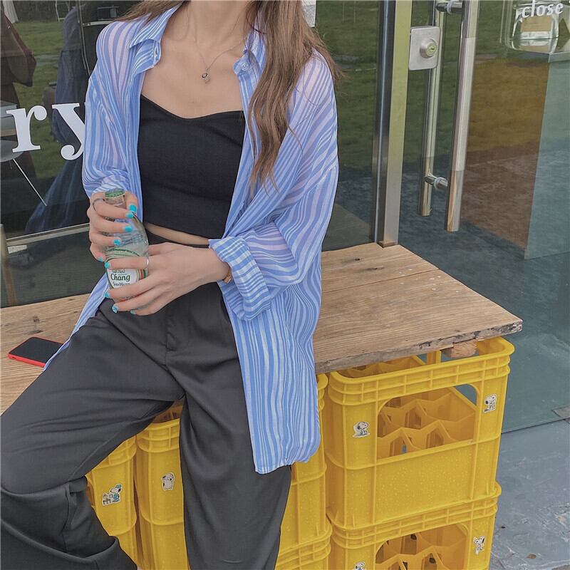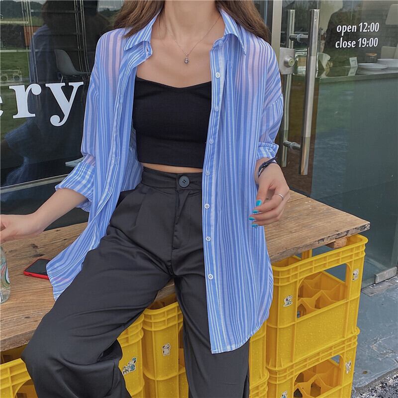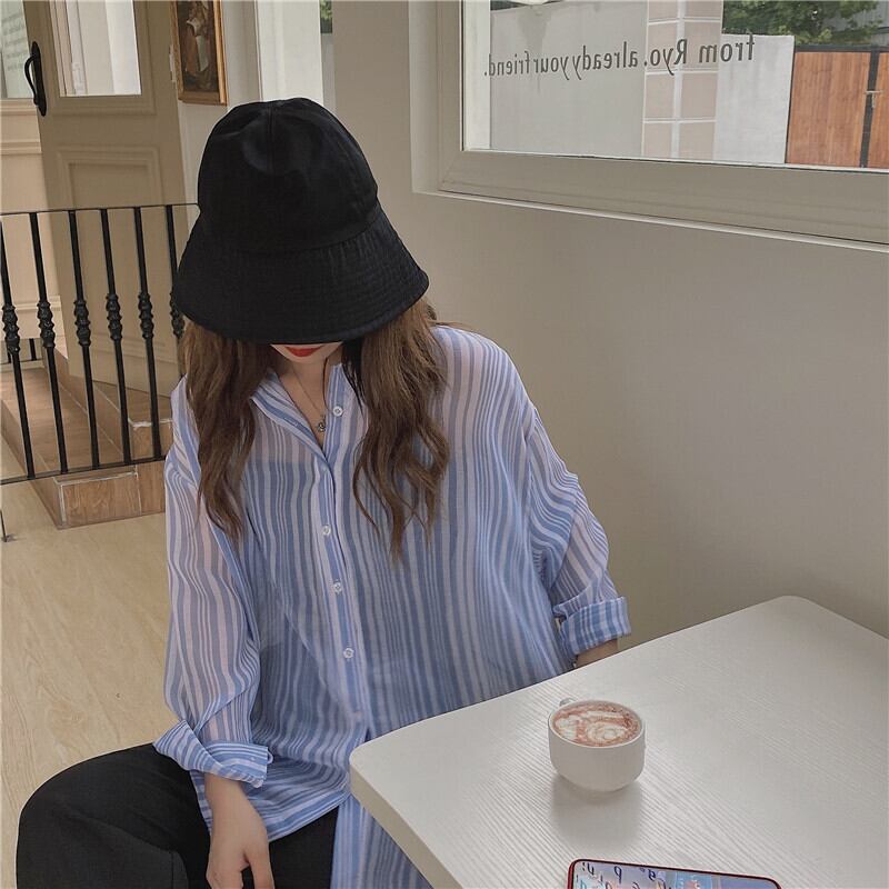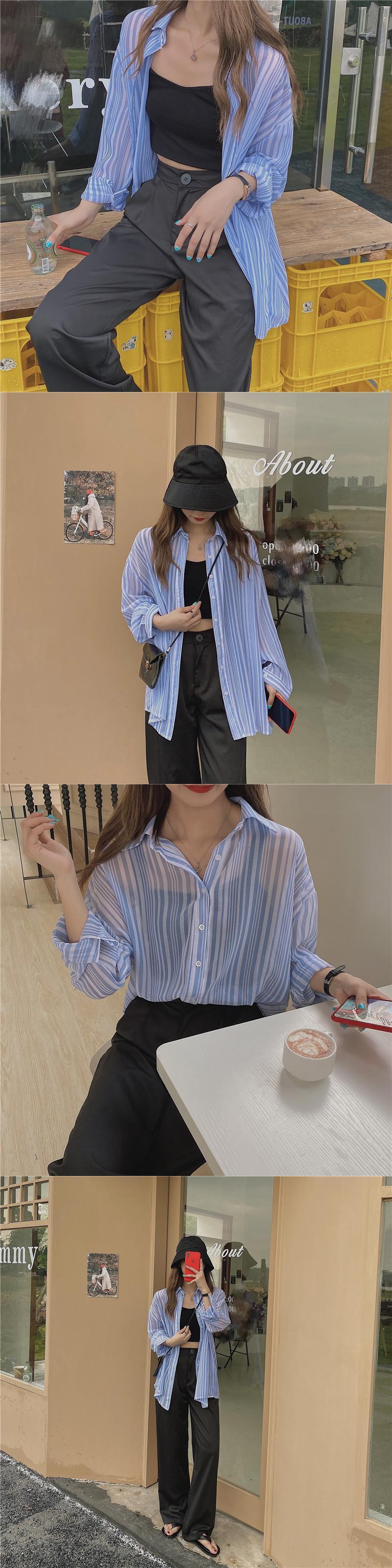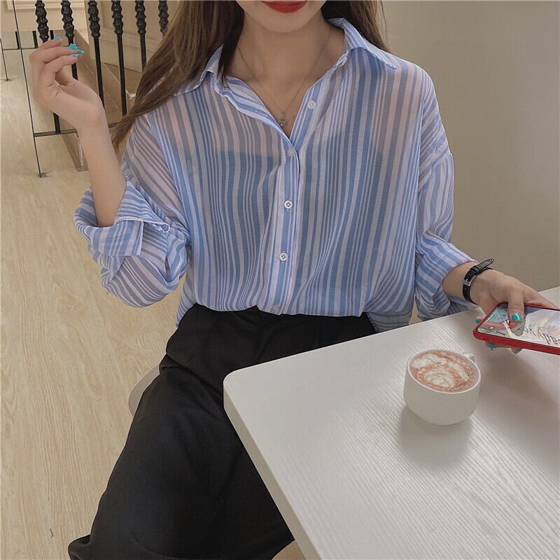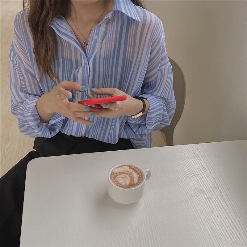 スプリングスタンダードストライプルーズシャツ ロング レトロ 春物 1号婦人23316951729