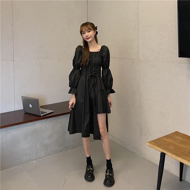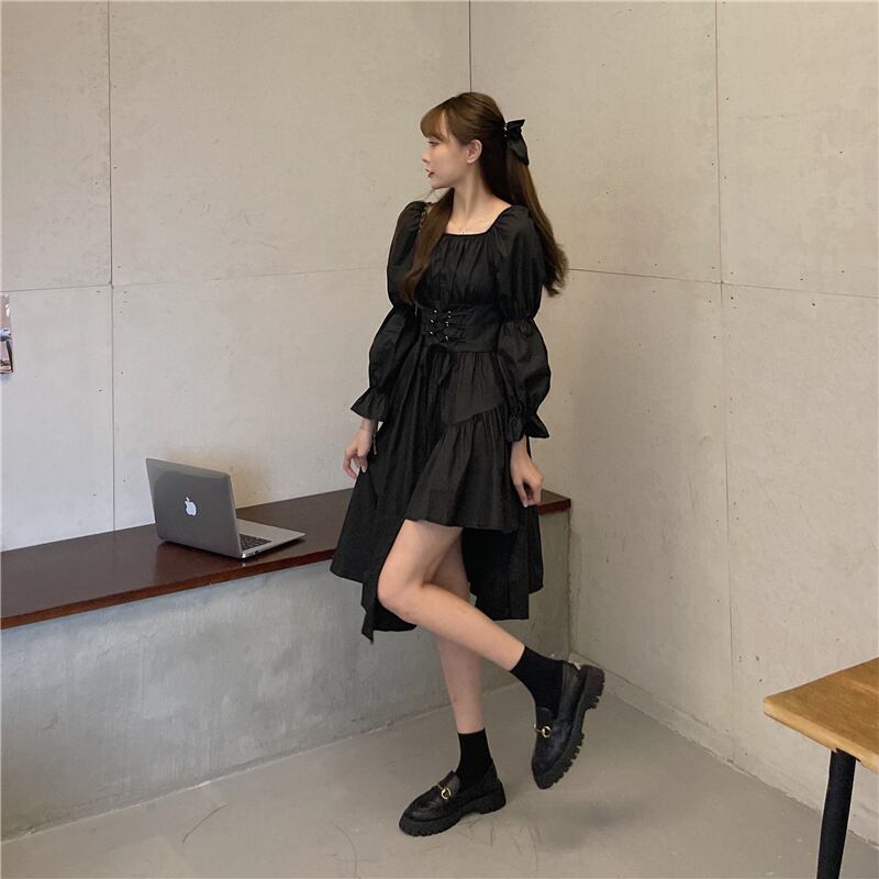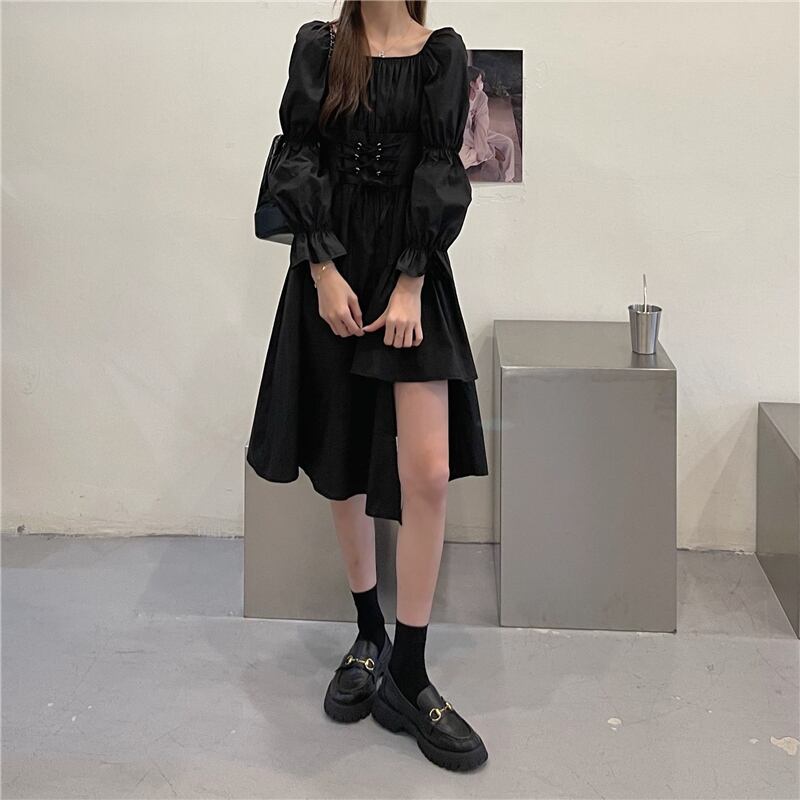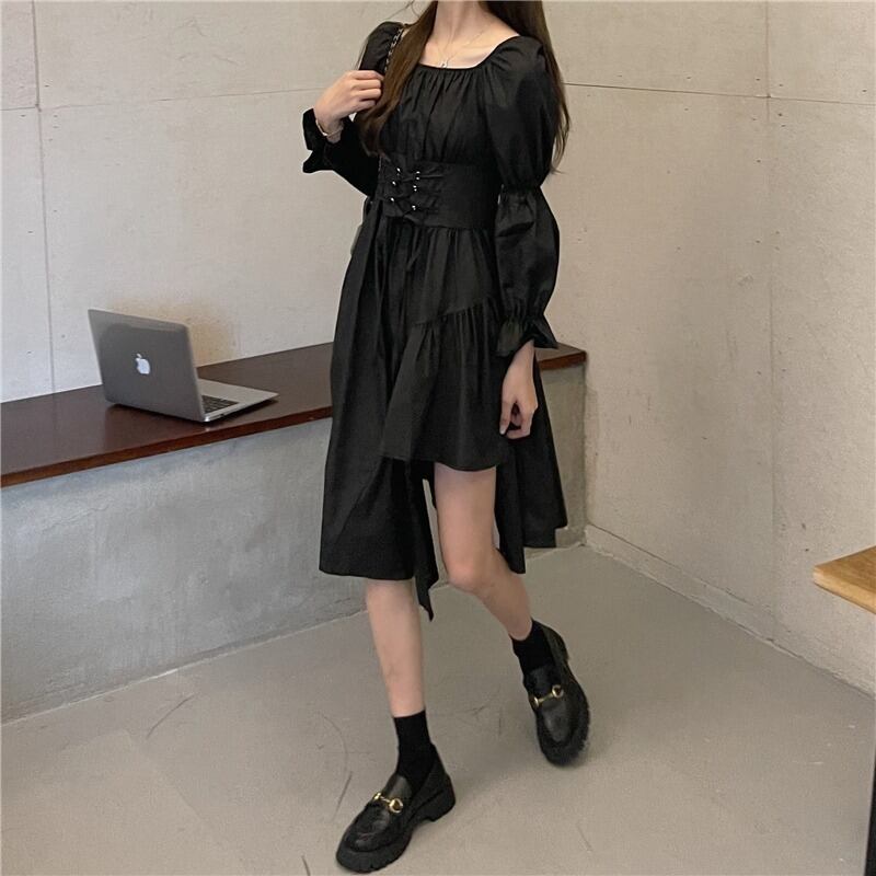 ドレス スプリングウェストAラインブラック 春物 1号婦人80363067029