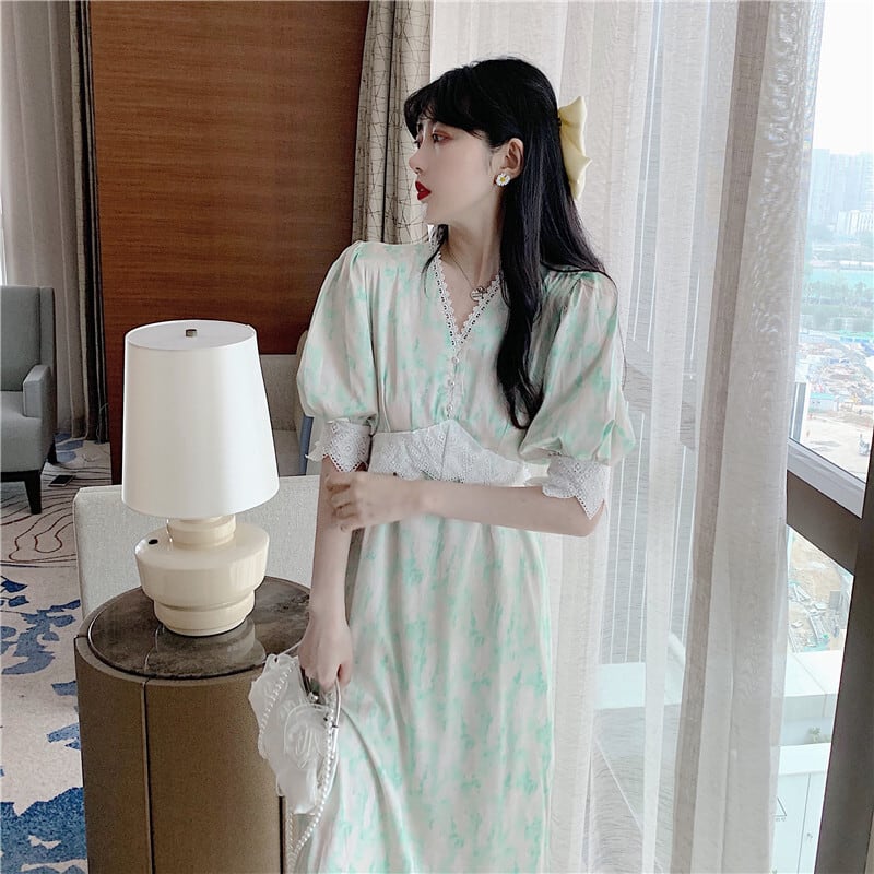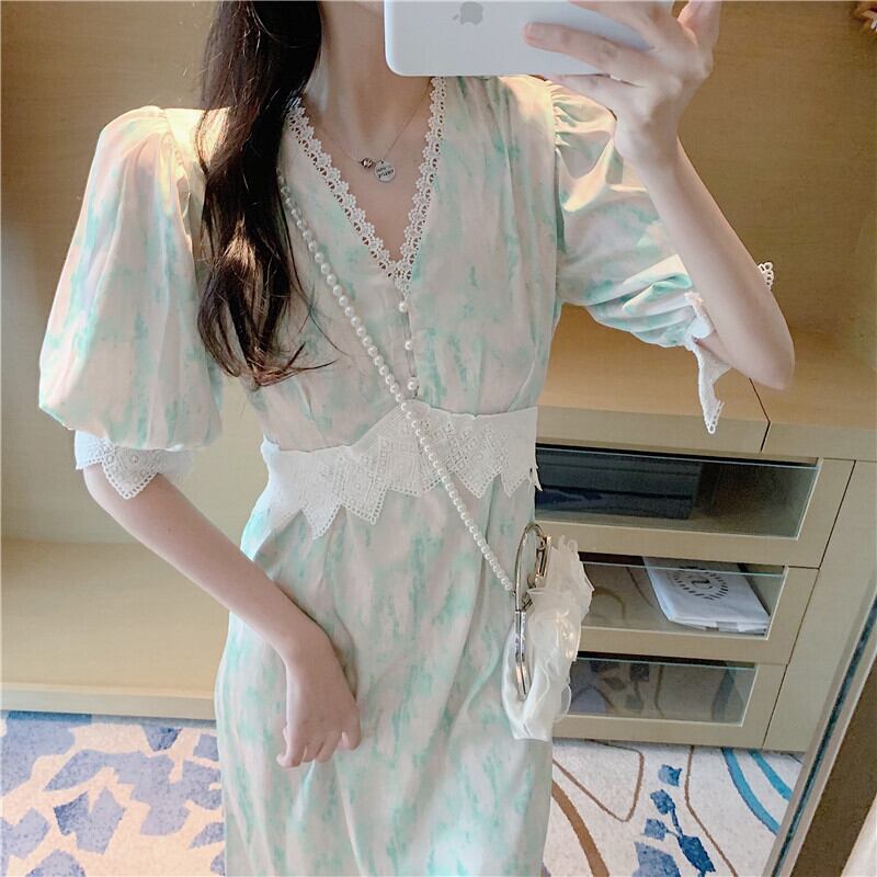 スカート スプリングオータムカジュアル薄手Vネックドレス 春物 秋物 1号婦人18788169466