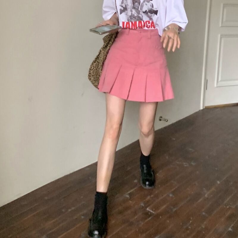 Aラインスカート スプリングオータムスタイルハイウェストウェストスリムプリーツ 春物 秋物 1号婦人49540535817