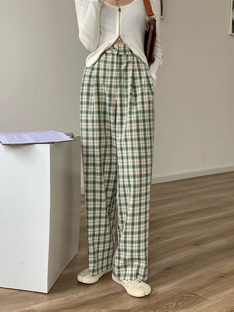 スタイルスタンダードスプリングオータムスリムシャツ 格子柄カジュアルパンツ ロング レトロ 春物 秋物 1号婦人30244175409