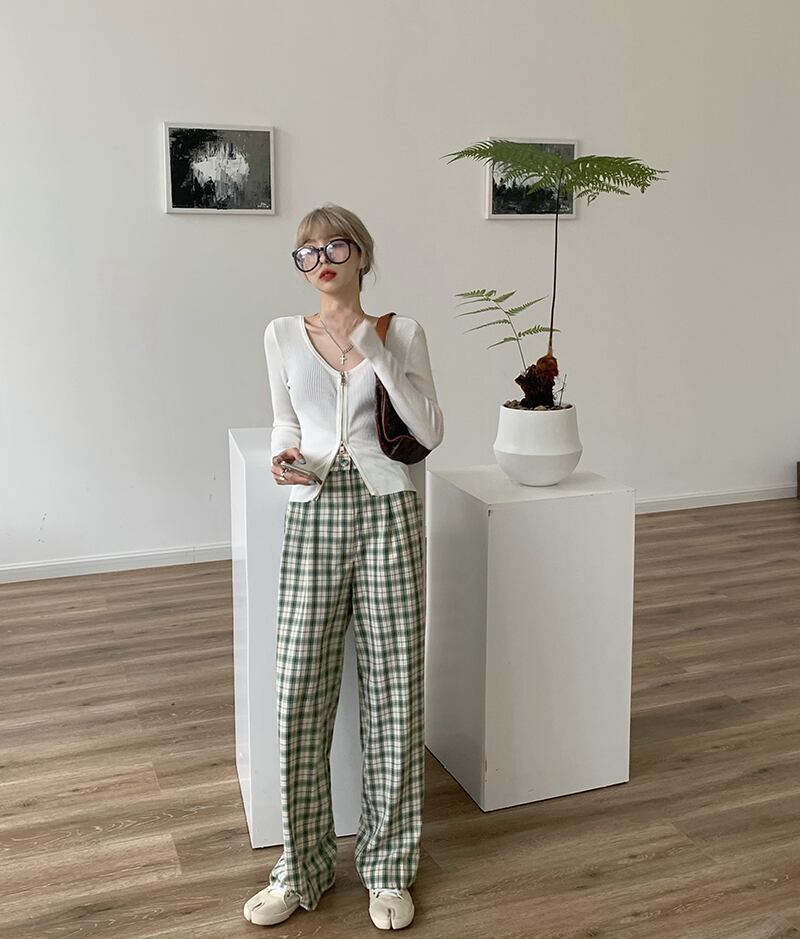 色:83061ホワイトニット長袖,83061黒ニット長袖,63826ブラックチェック柄パンツ,63826グリーンチェック柄パンツ