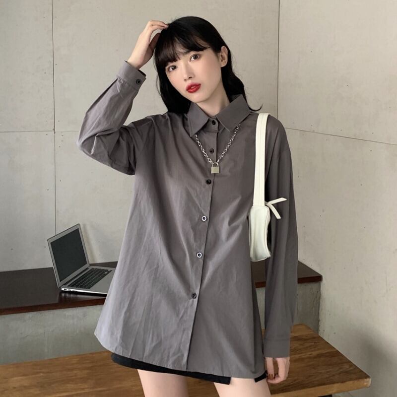 スタイルスタンダードスプリングオータムショートルーズシャツ レトロ 春物 秋物 1号婦人93244451886