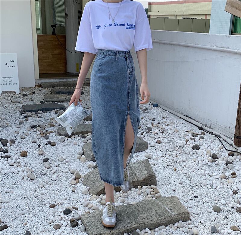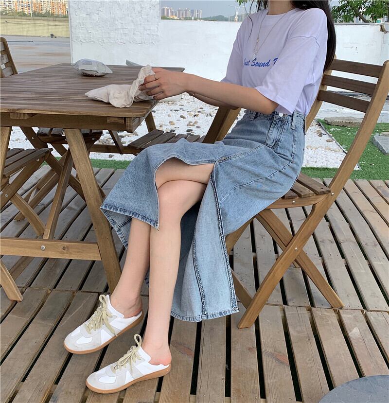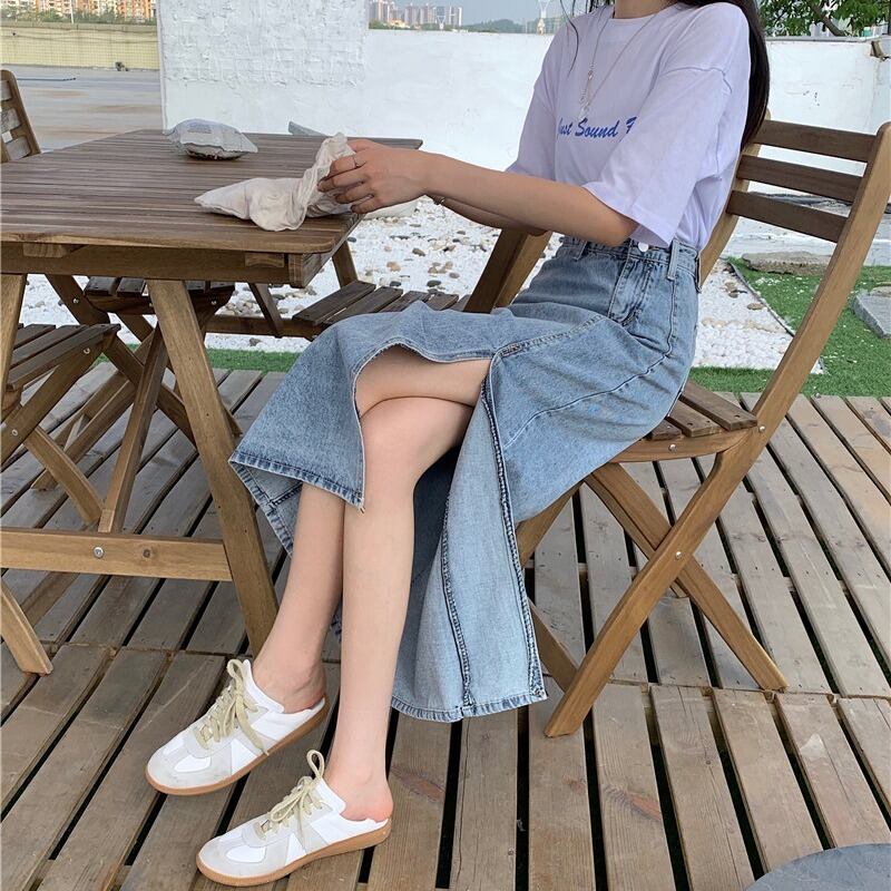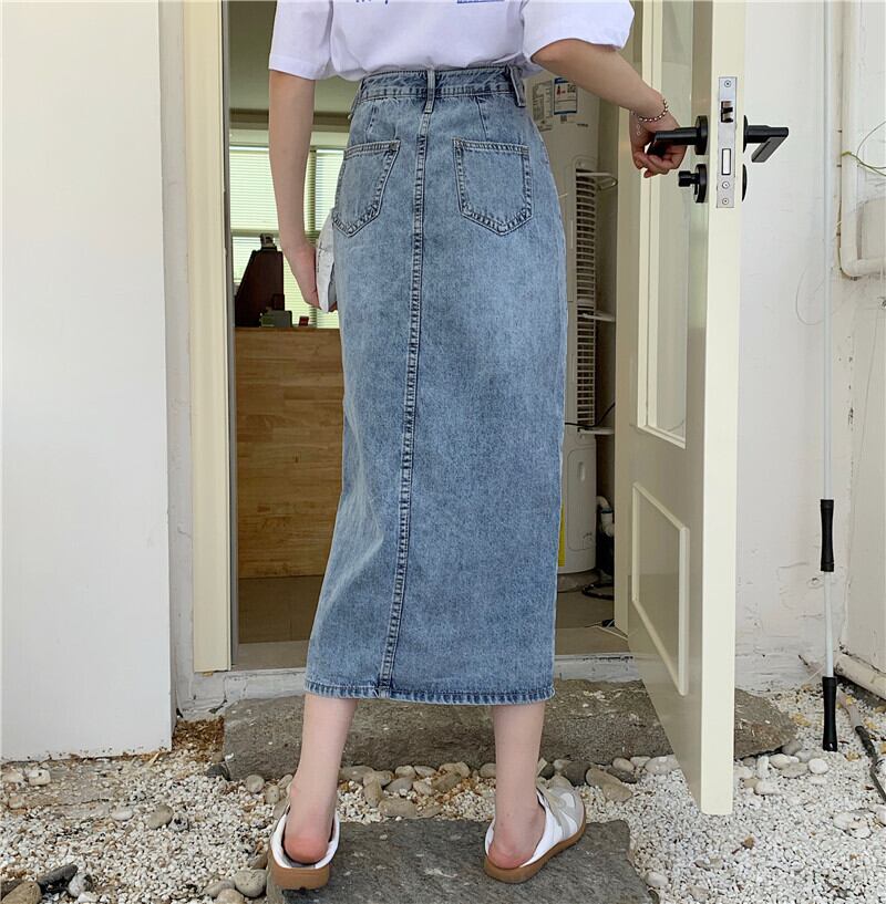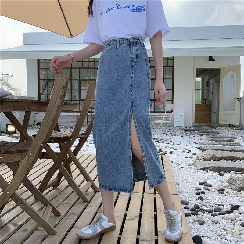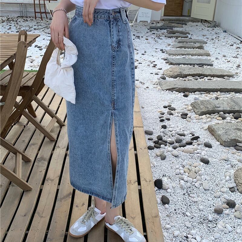 スカート スプリングオータムスタンダードスリット薄手ハイウェストウェストAライン レトロ 春物 秋物 1号婦人84509887663
