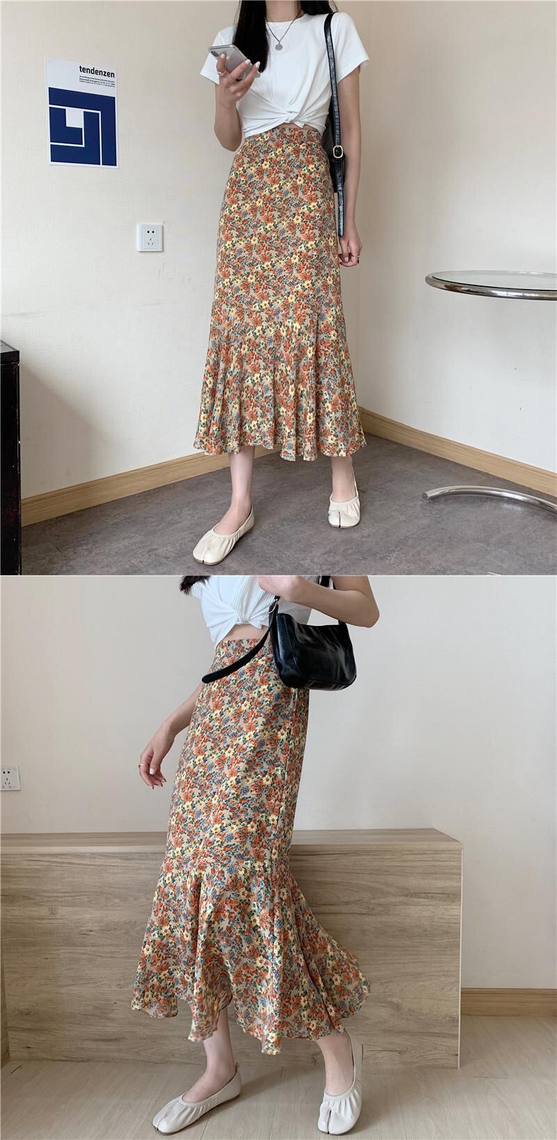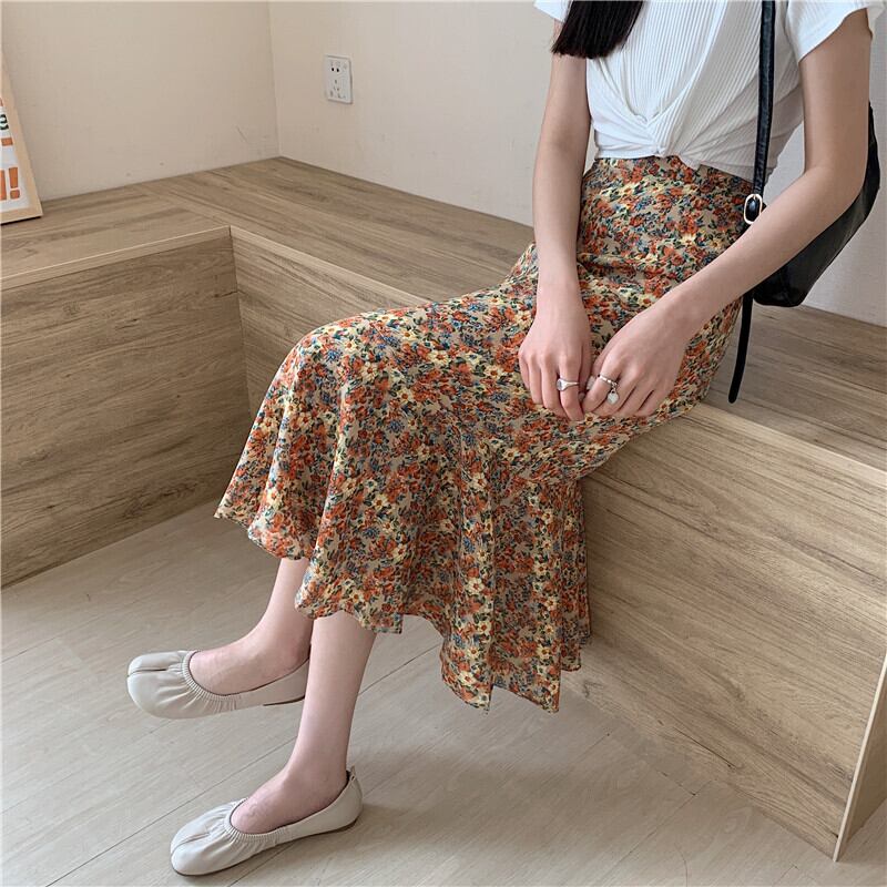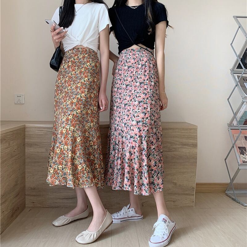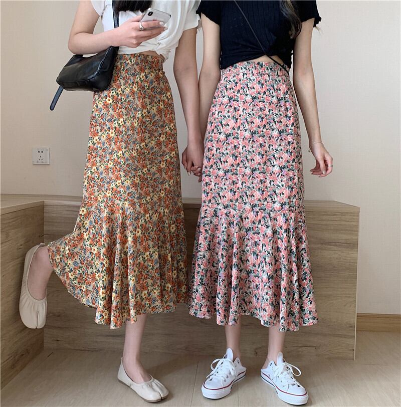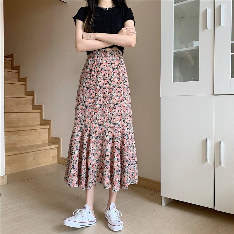 スタンダードフローラルAラインスカート スプリングオータムハイウェストウェスト レトロ 春物 秋物 花柄 1号婦人16534866938