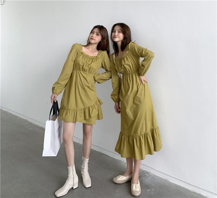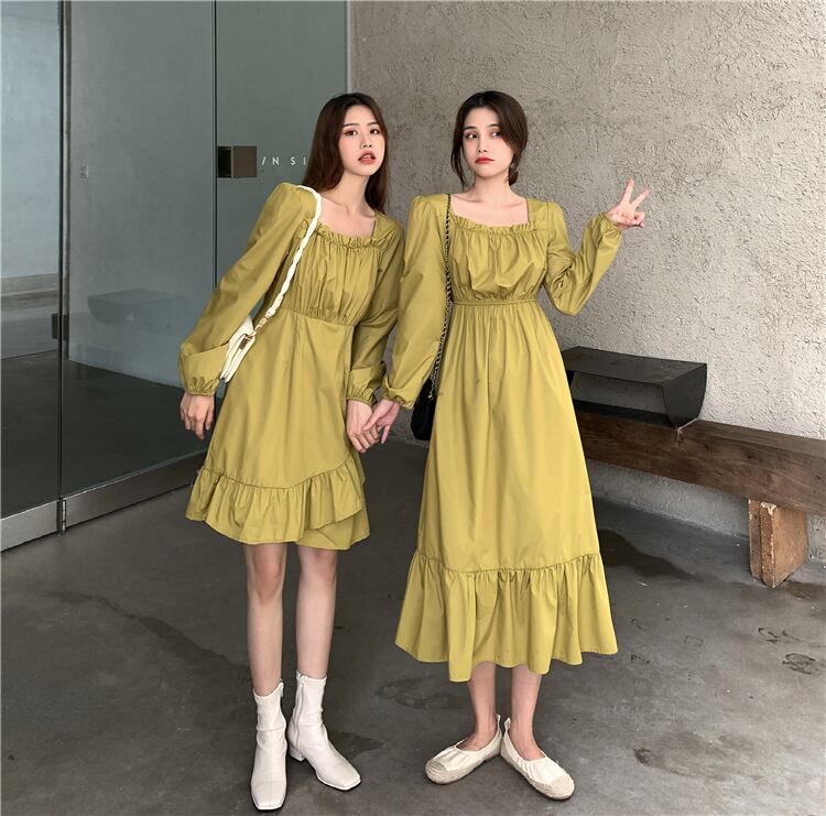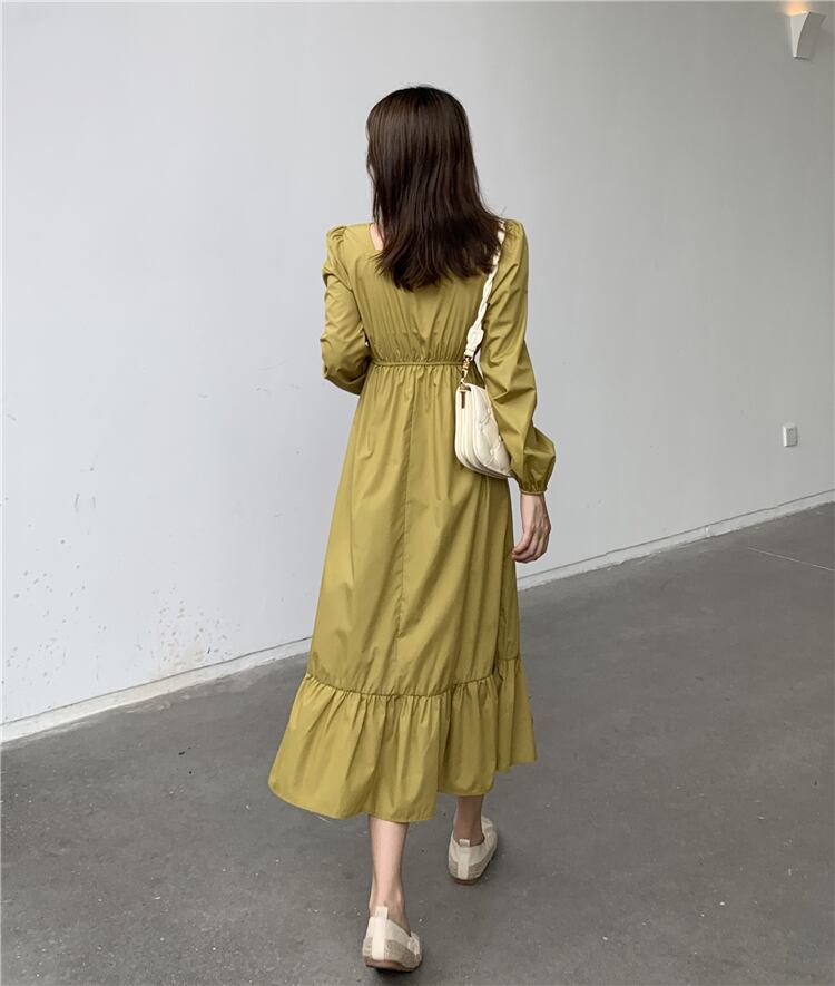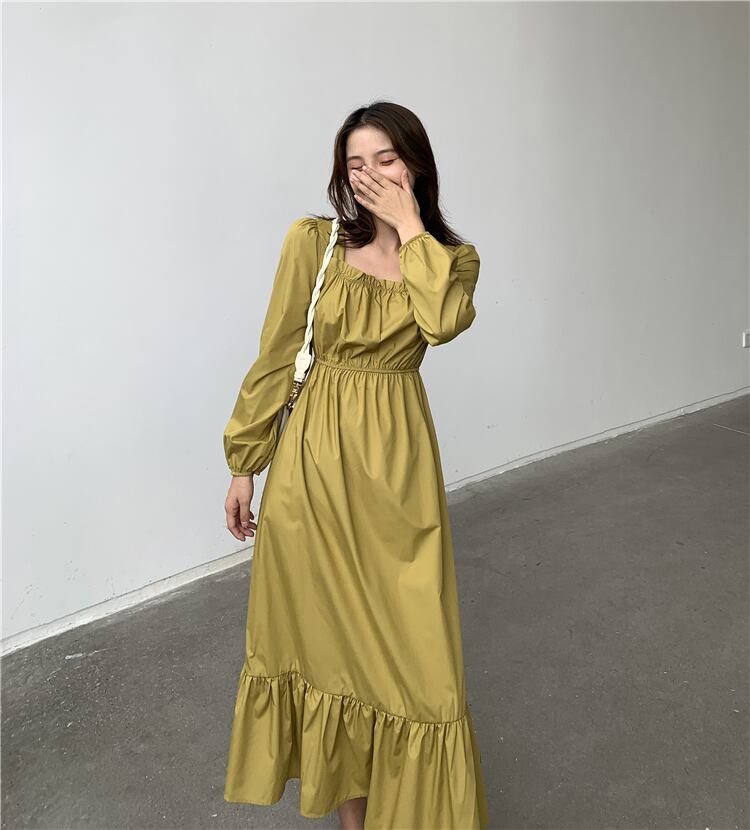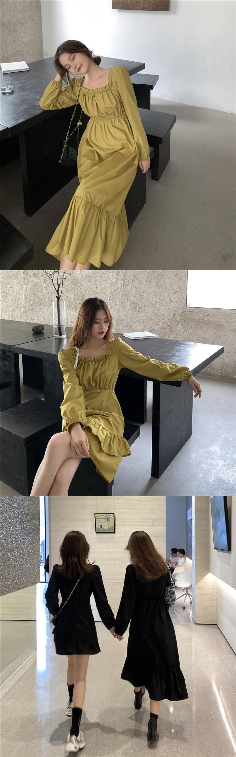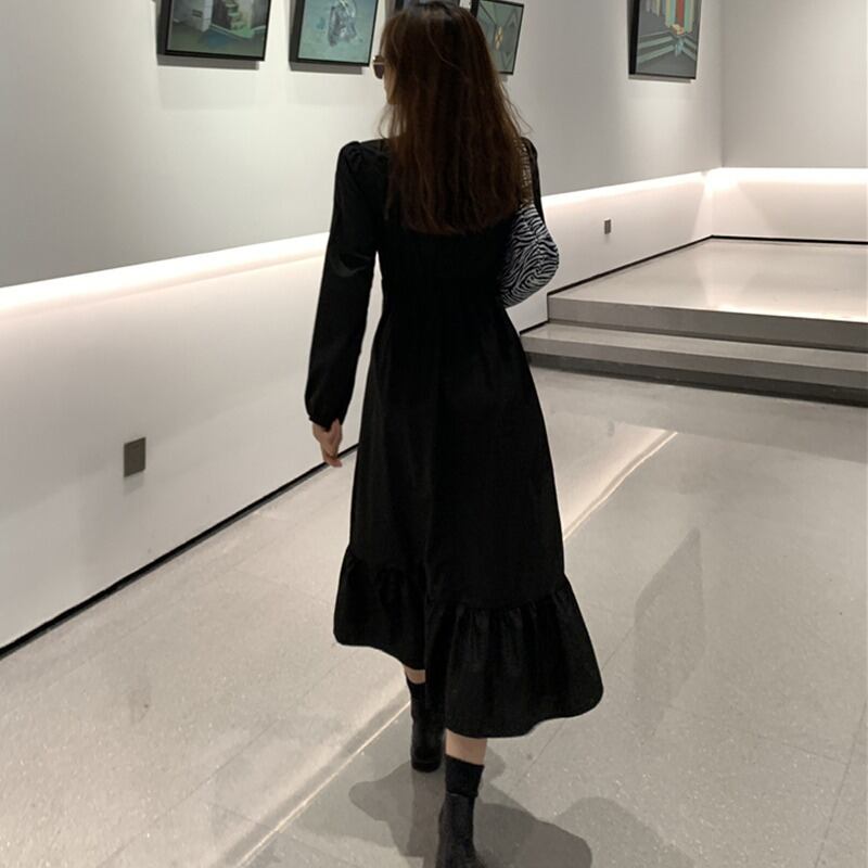 ドレス スプリングオータムスタンダードウェストカラーAラインブラックスカート ロング レトロ 春物 秋物 スクウェア 1号婦人13043489486