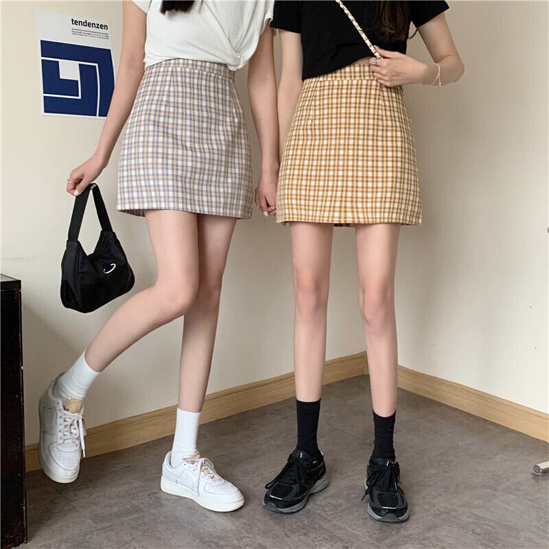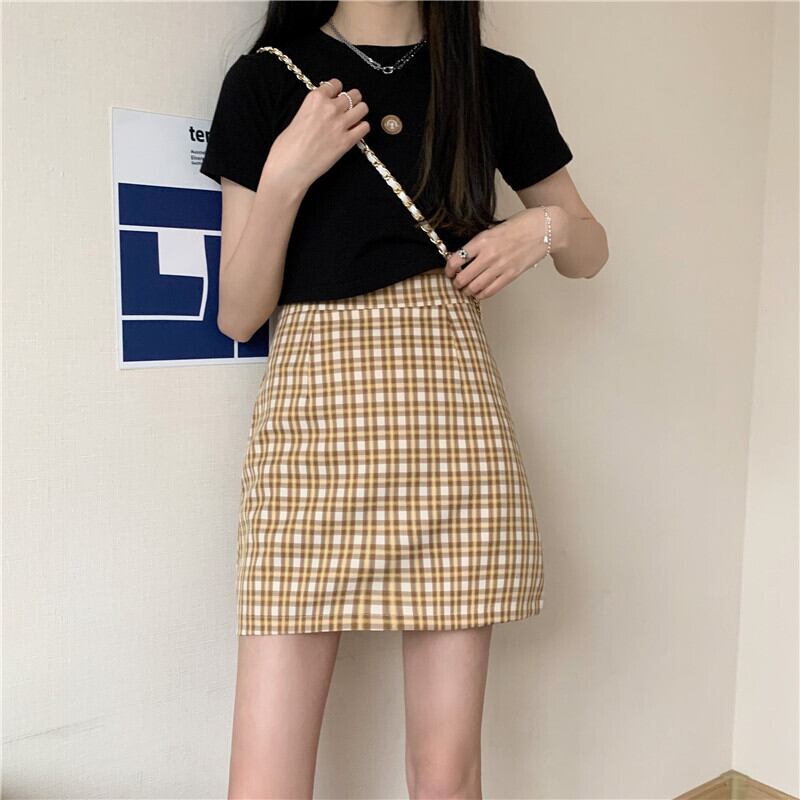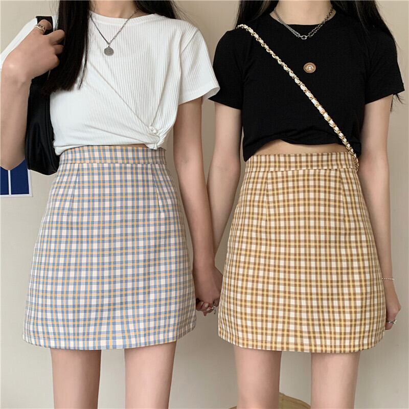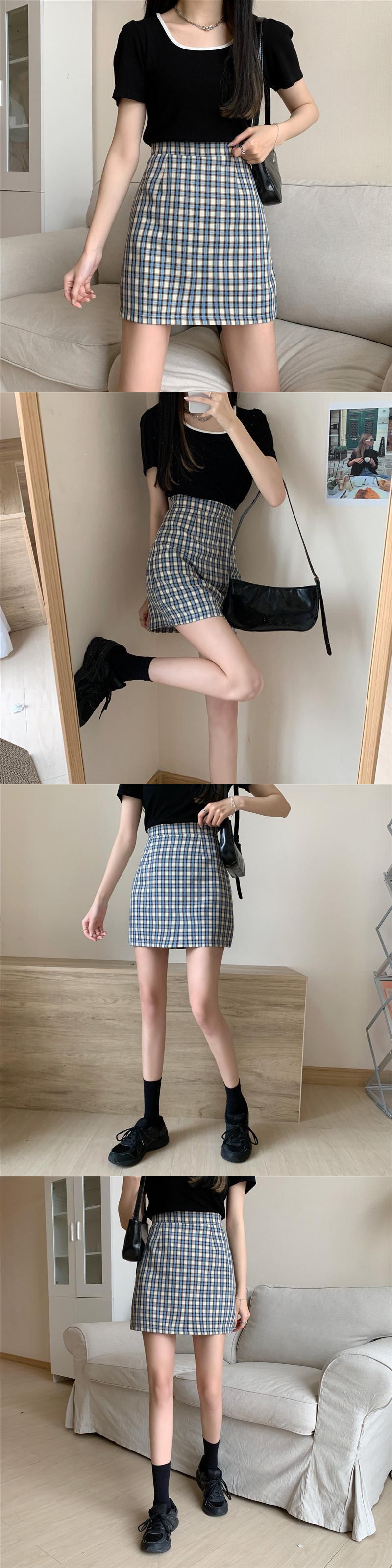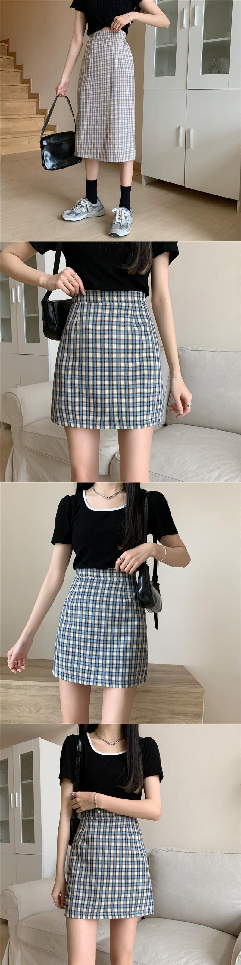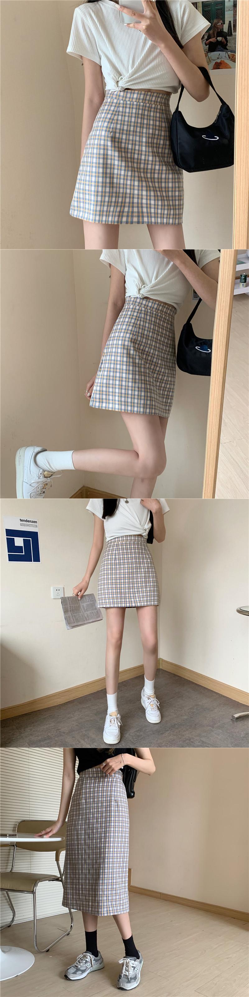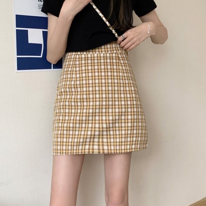 スプリングサマー格子柄Aラインスカート ハイウェスト薄手 春物 夏物 1号婦人77969655319