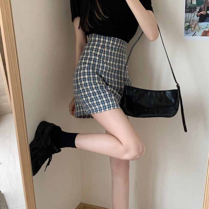 色:ブルーチェック柄ショート,ブルーチェック柄ミドル丈,イエローチェック柄ショート,イエローチェック柄ミドル丈,ライトブルーのチェック柄ショートパンツ,ライトブルーのチェック柄ミドル丈