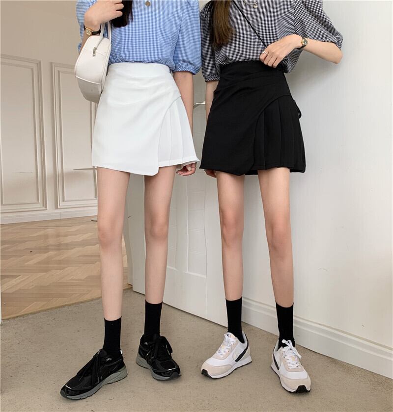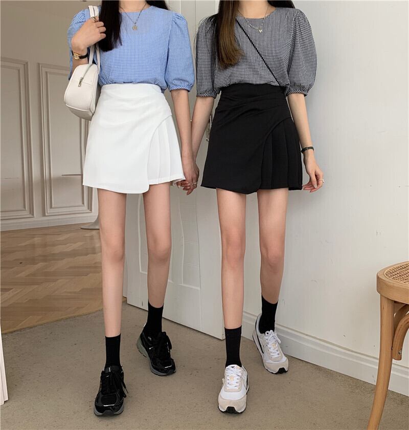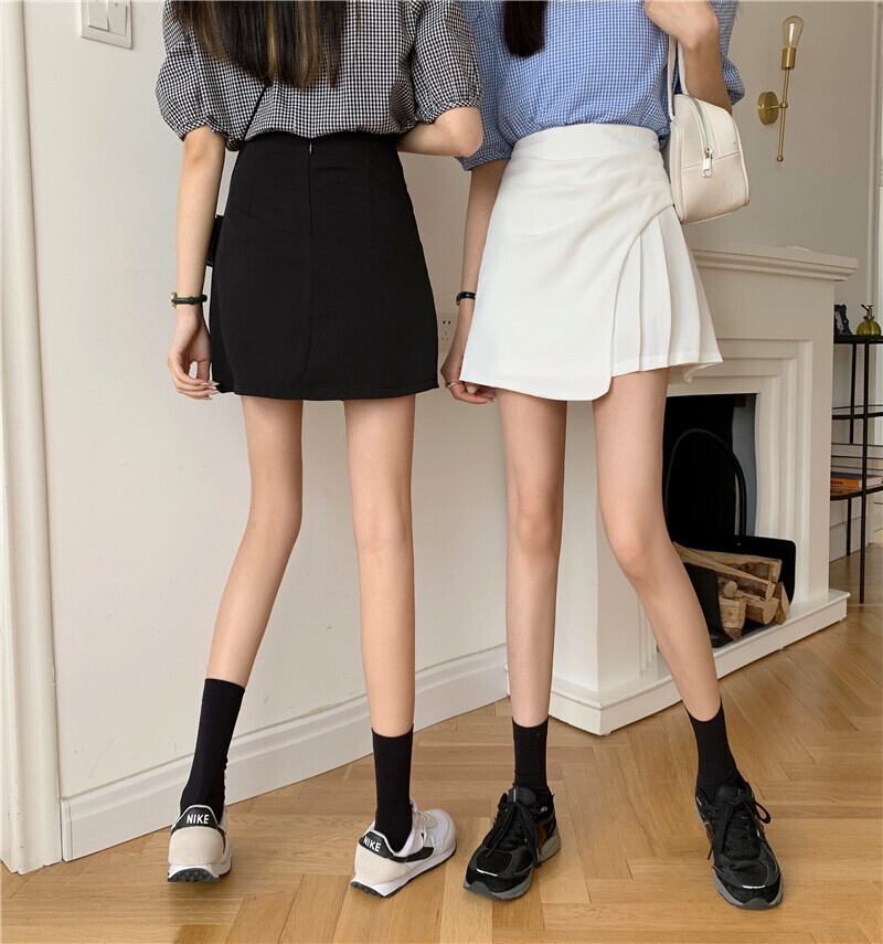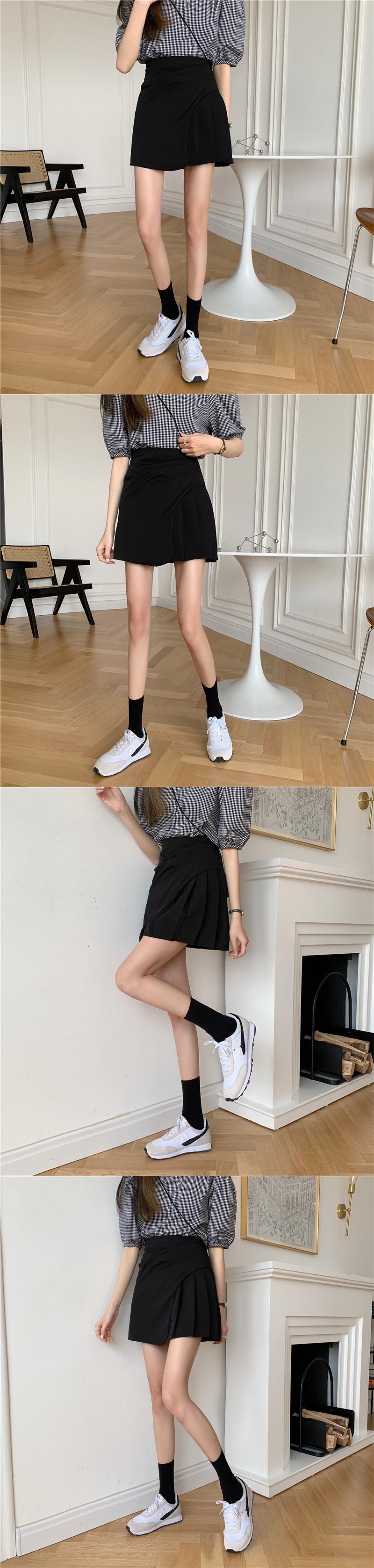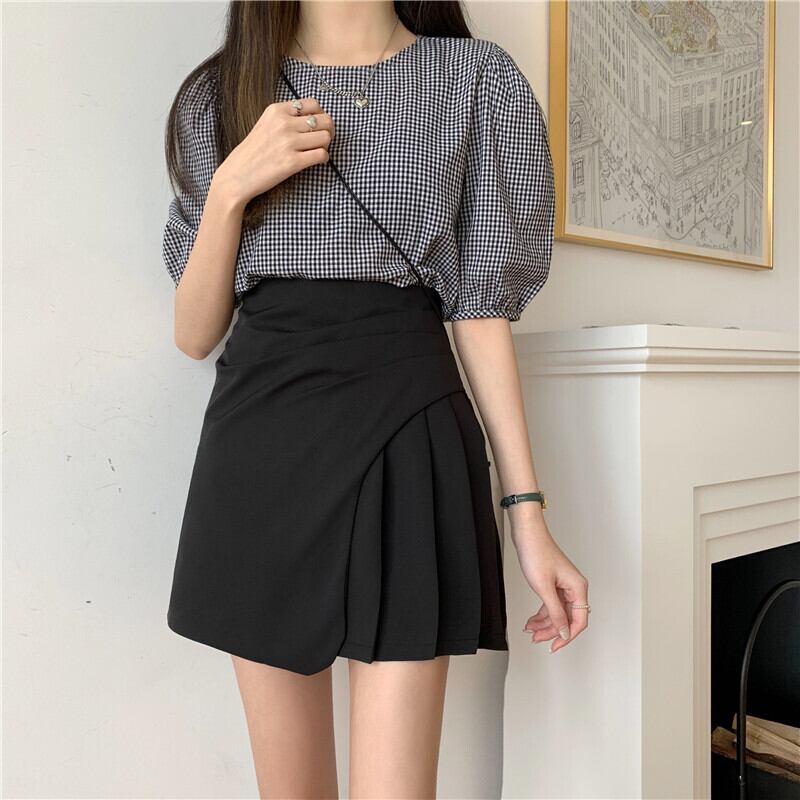 Aラインスカート スプリングオータムハイウェストウェストブラックスタイル薄手ショート 春物 秋物 1号婦人90130639124