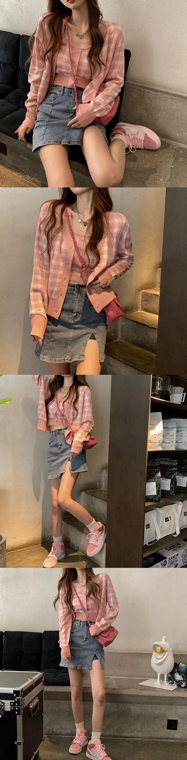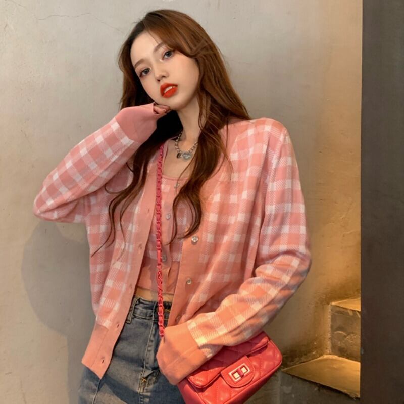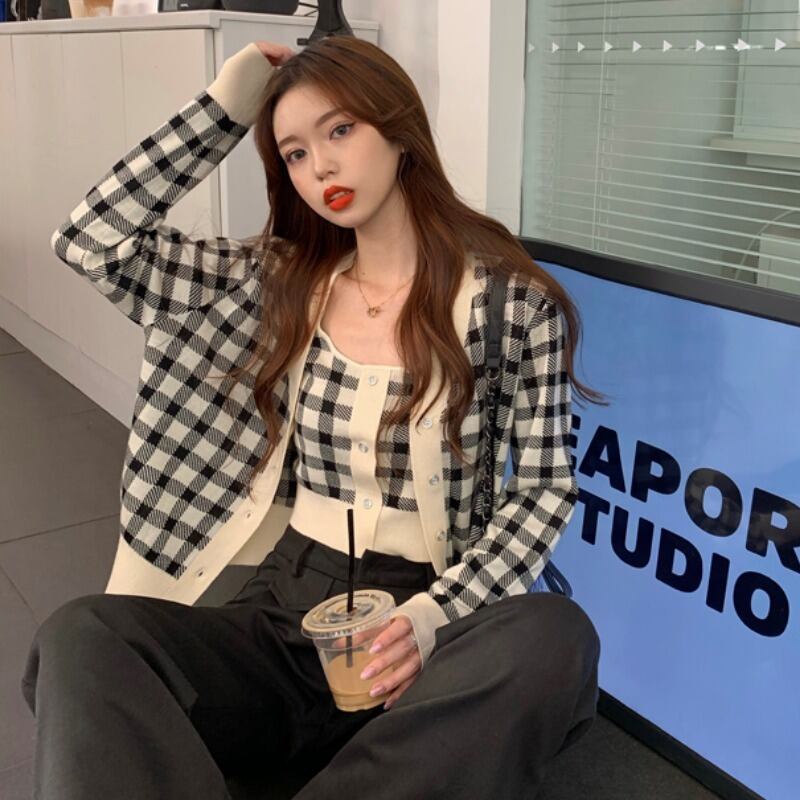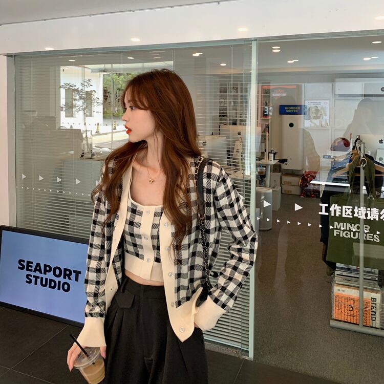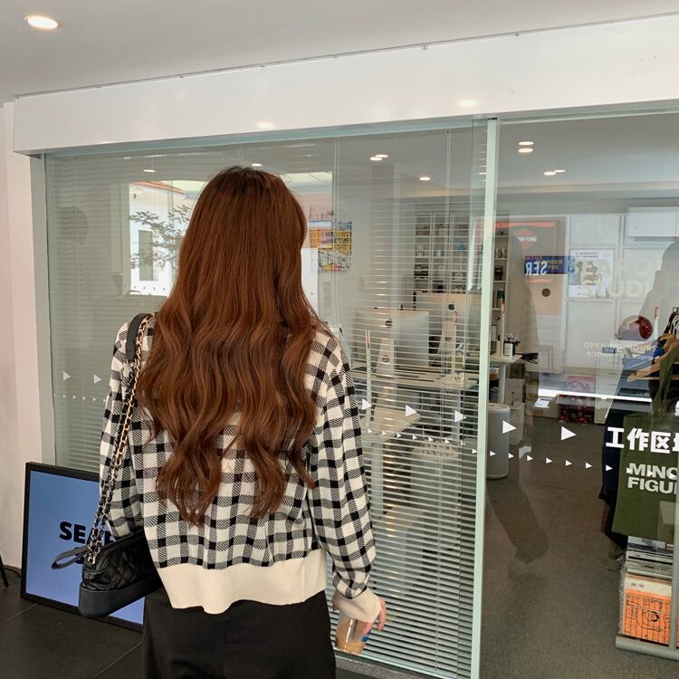 カーディガンセーター ジャケット ニットスプリングスタイルショート格子柄トップス ロング 春物 1号婦人2746533591
