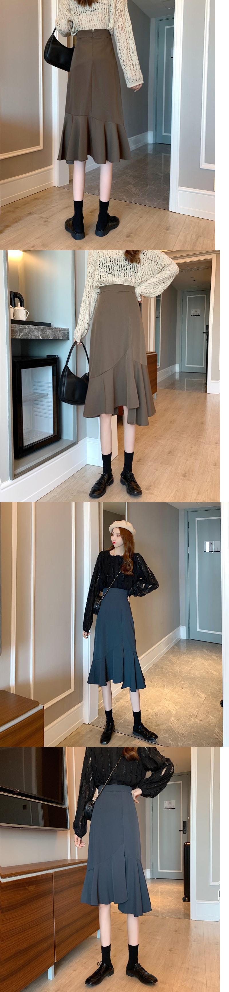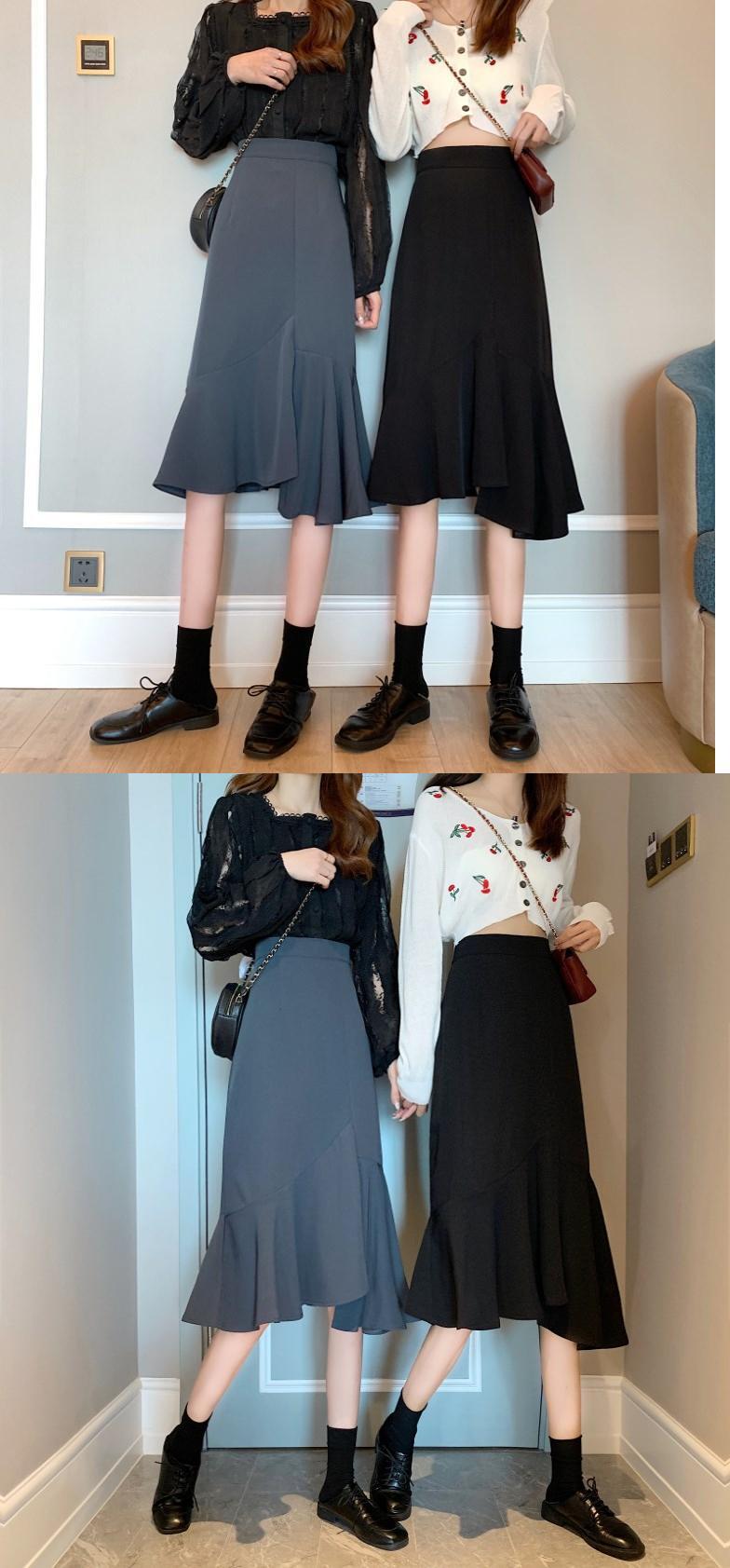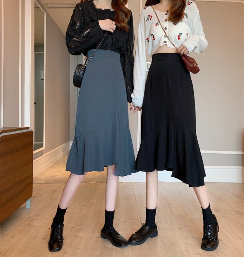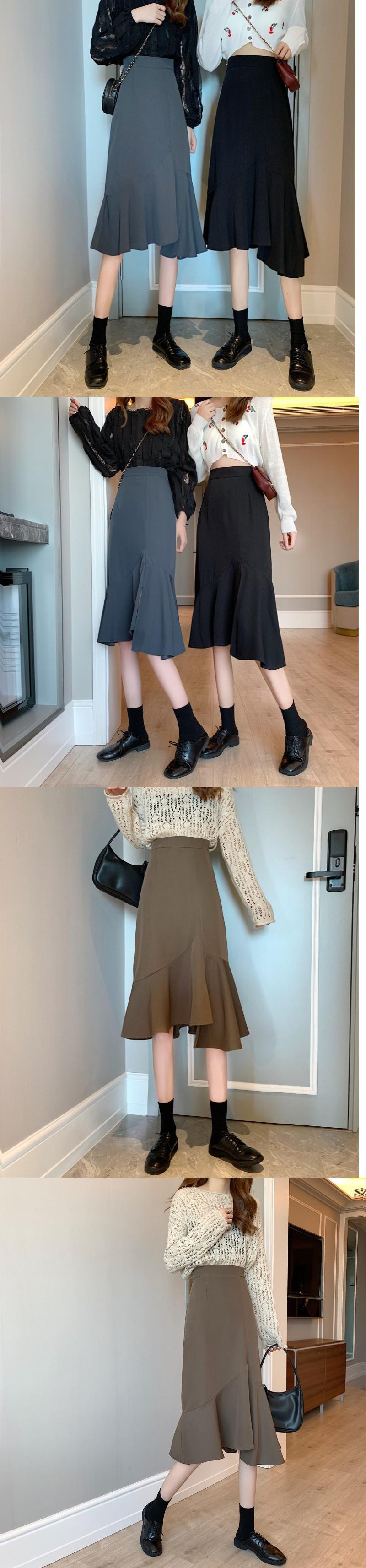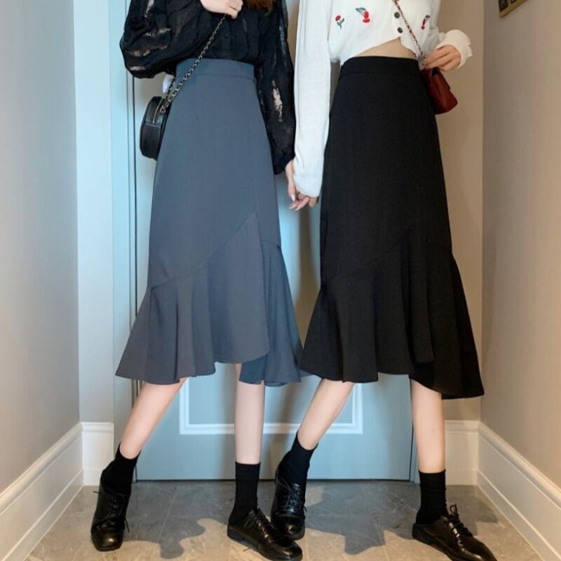 ブラックスカート スプリングハイウェストウェスト薄手Aライン 春物 1号婦人11099381730