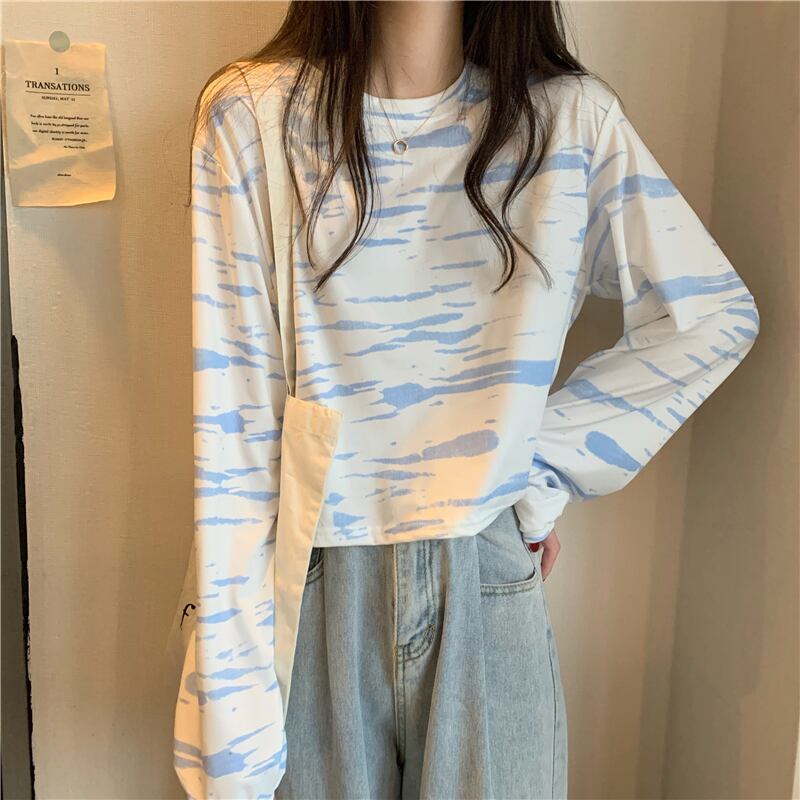 プリント柄Tシャツ シャツ スプリングオータムスタイルショート長袖スリーブトップス ロング 春物 秋物 1号婦人59496148988