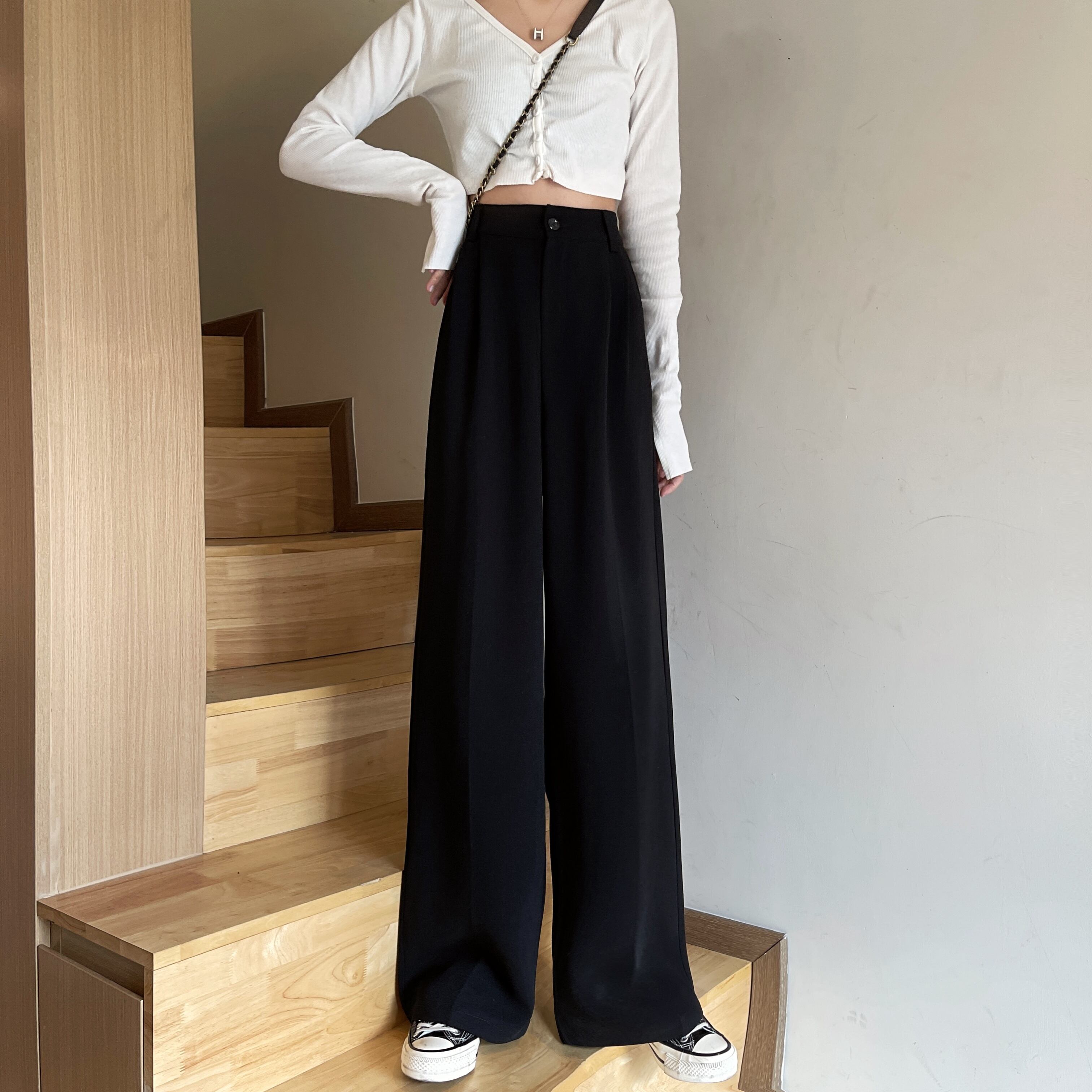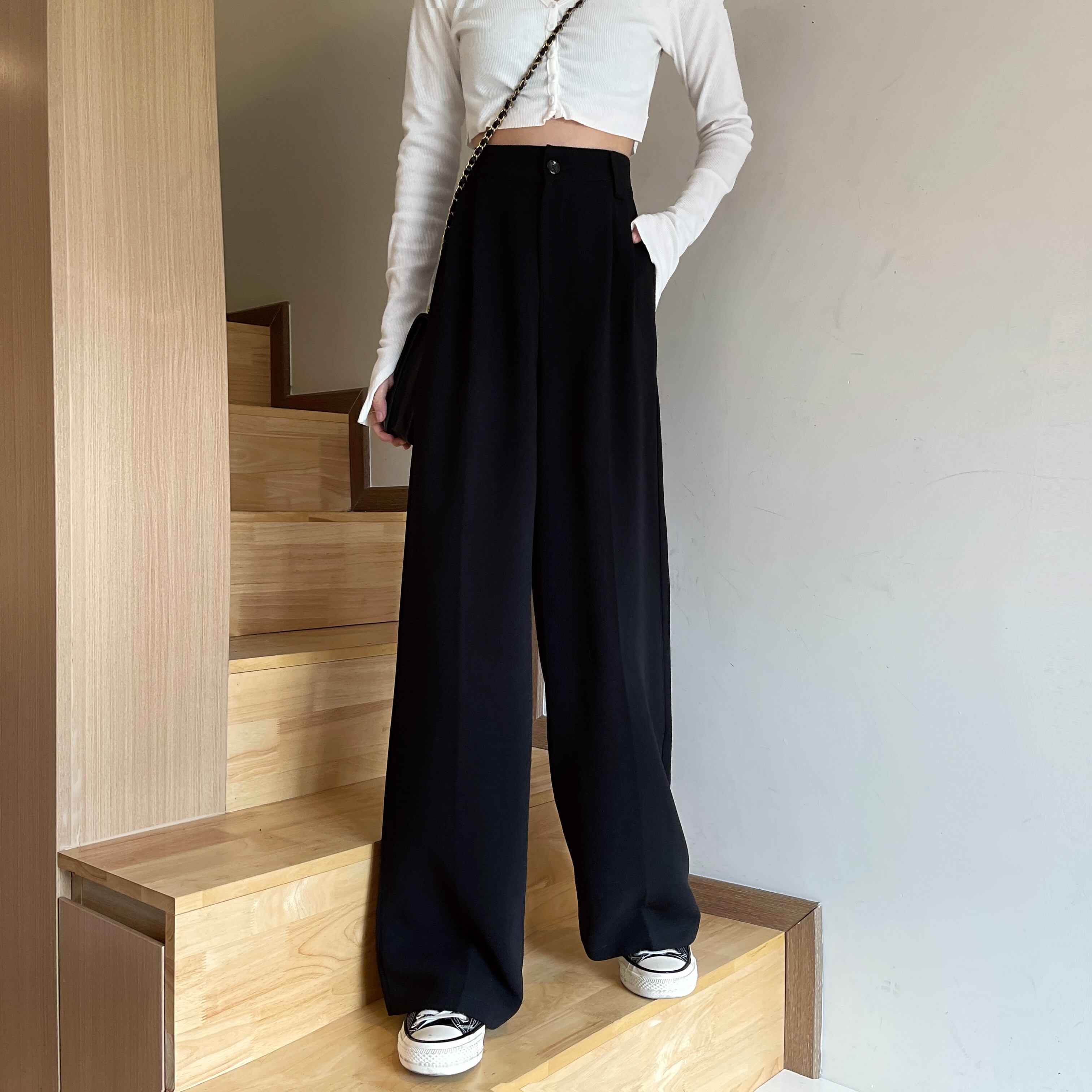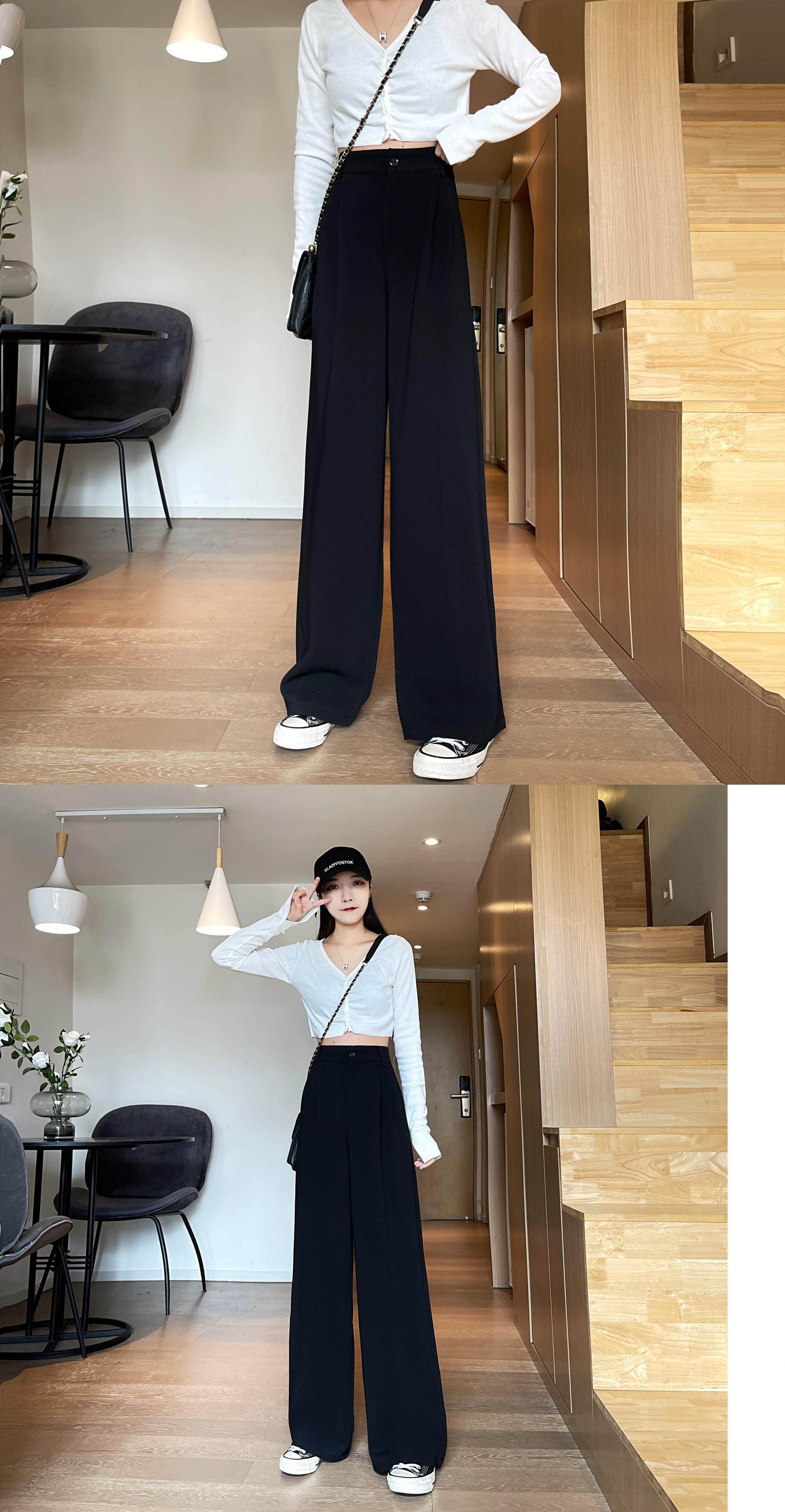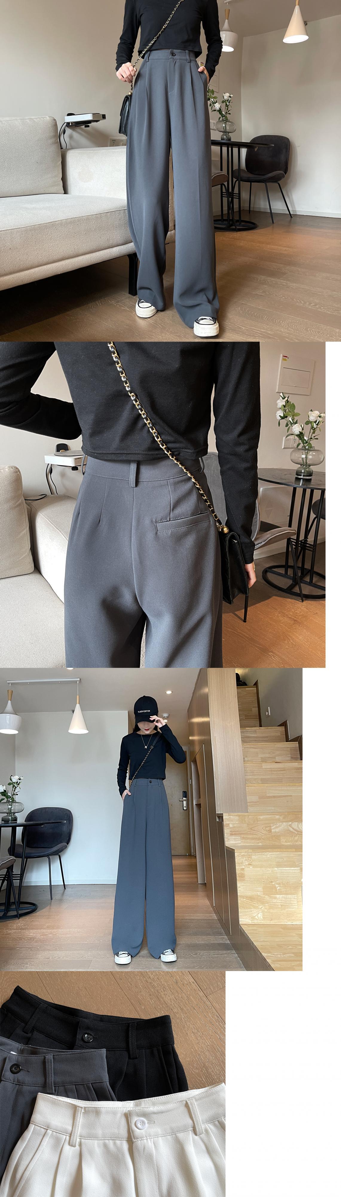 ワイドレッグパンツ スプリングオータムハイウェストウェストルーズスリムカジュアル 春物 秋物 ワイドパンツ 1号婦人33940451107