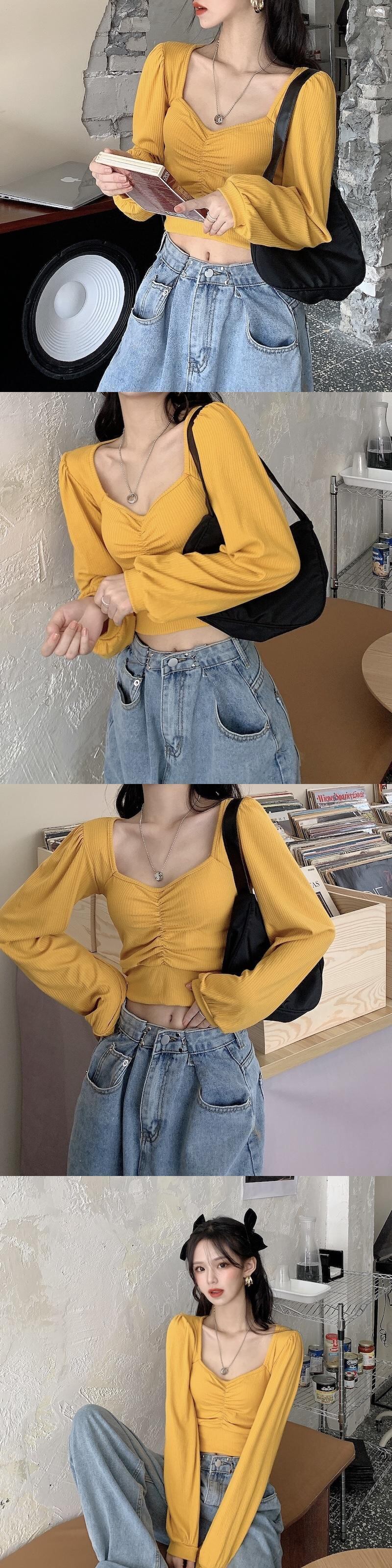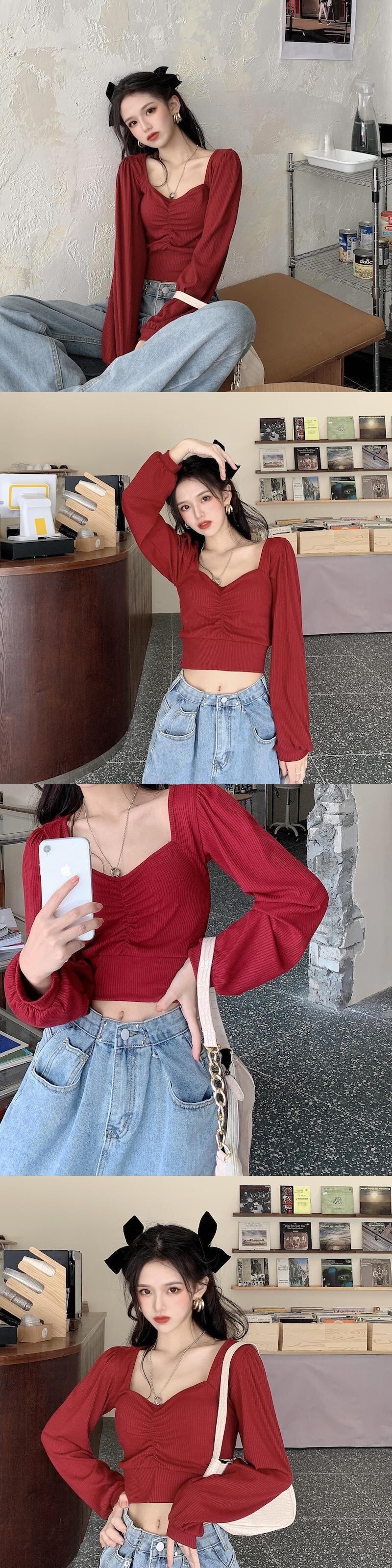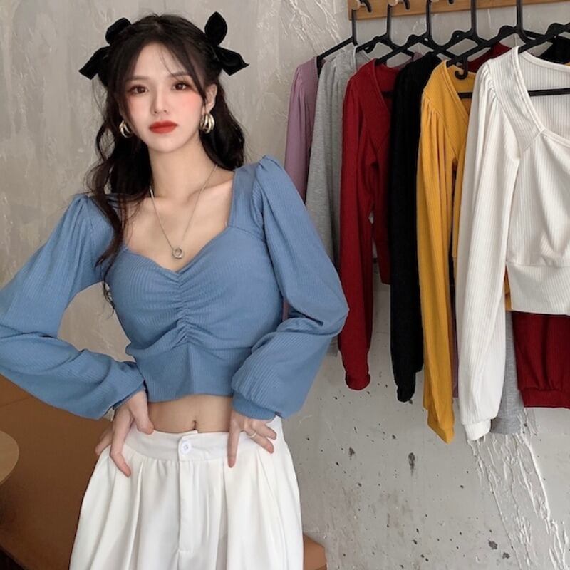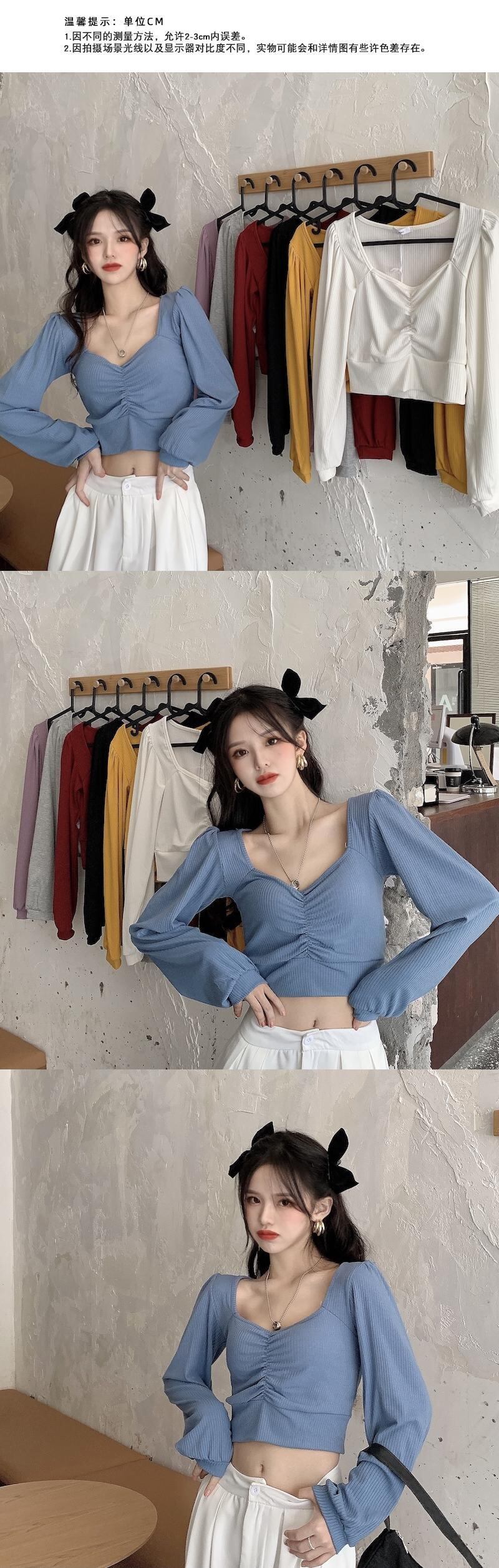 シャツ スプリングスタイルショートTシャツ スリーブVネックトップス ランタンスリーブ 春物 1号婦人72446787258