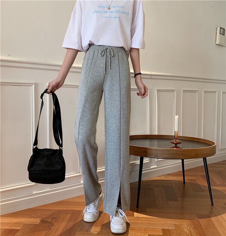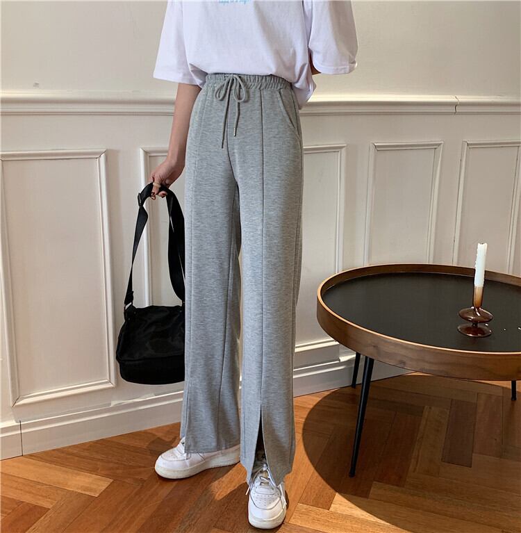 グレーカジュアルパンツ スプリングオータムスリムハイウェストウェスト 春物 秋物 1号婦人33296203204