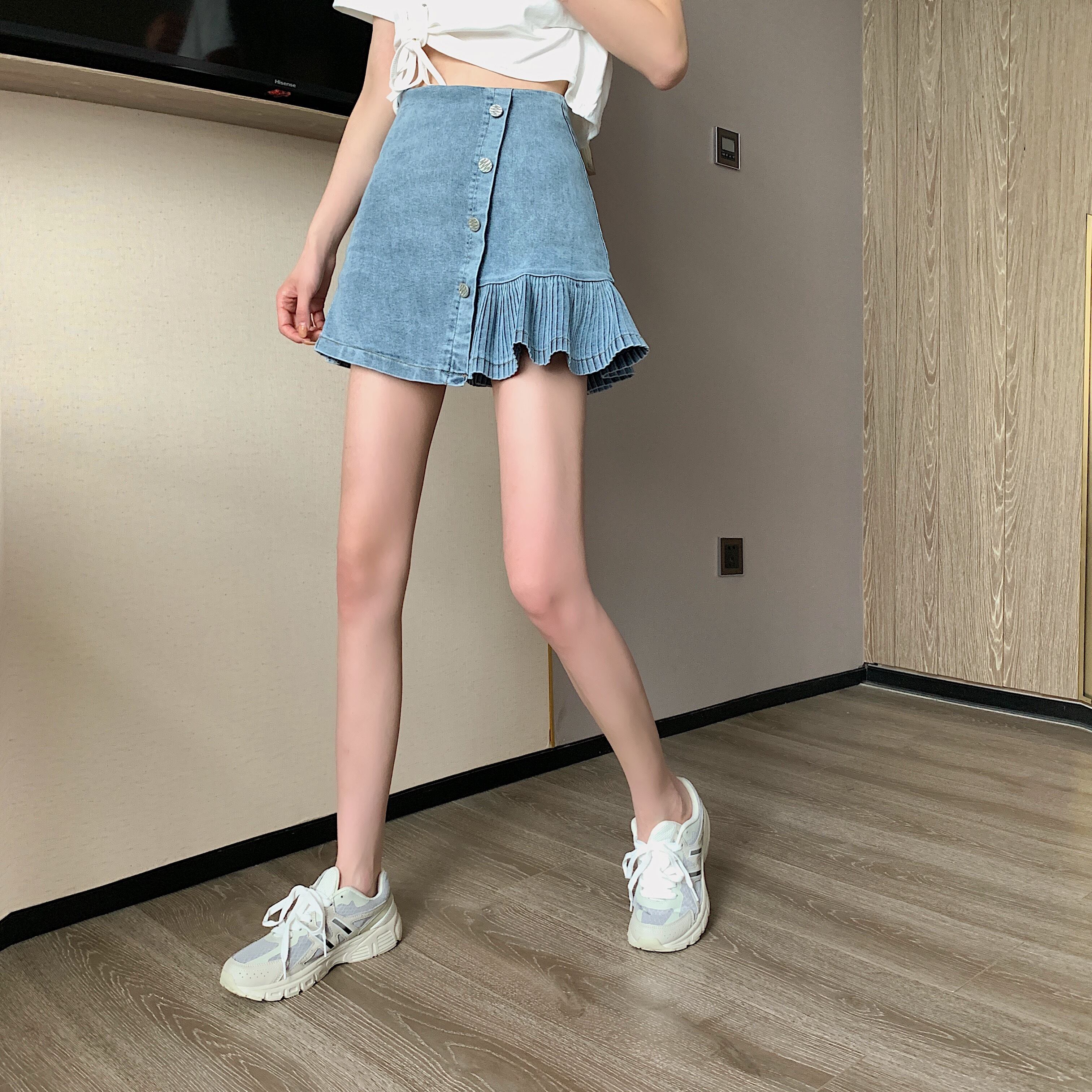 スプリングオータムAラインスカート スタイルカジュアルハイウェストウェスト 春物 秋物 1号婦人2100634083