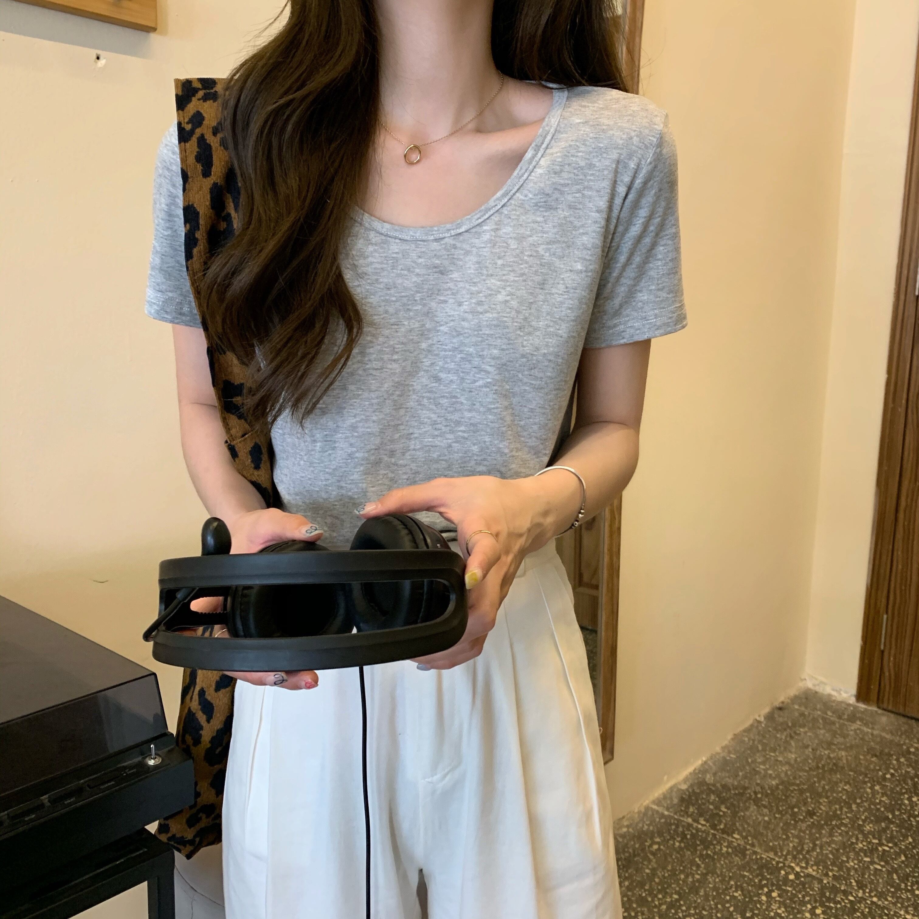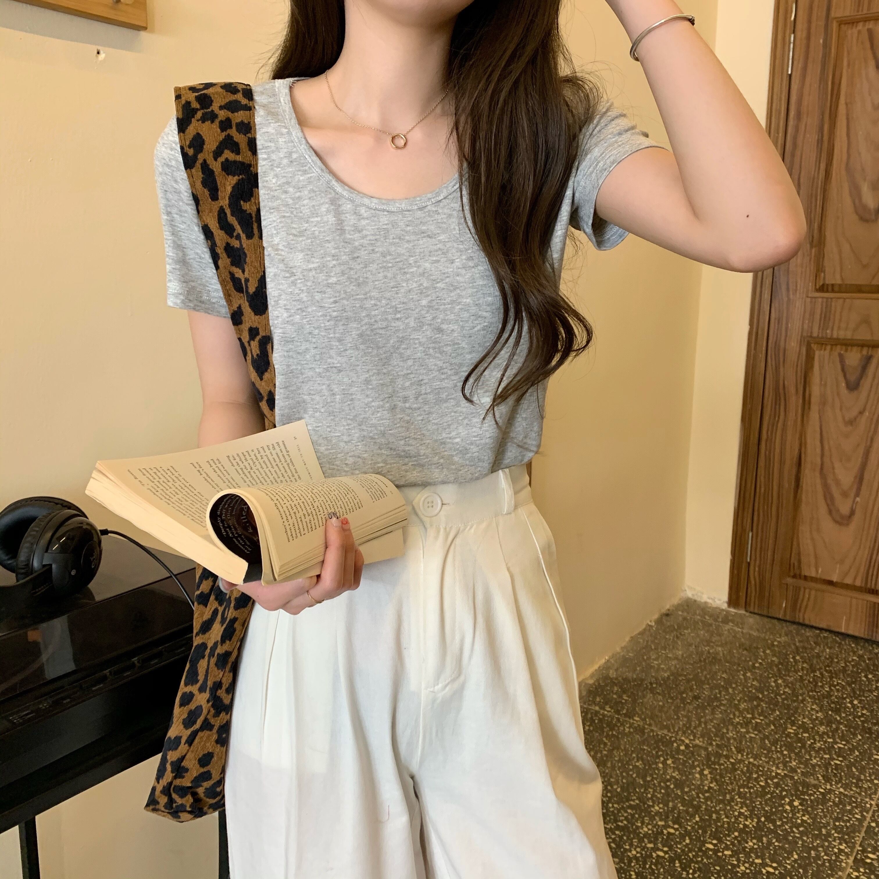 ホワイトショートTシャツ シャツ スプリングラウンドネックトップス 春物 Oネック 1号婦人88569762215