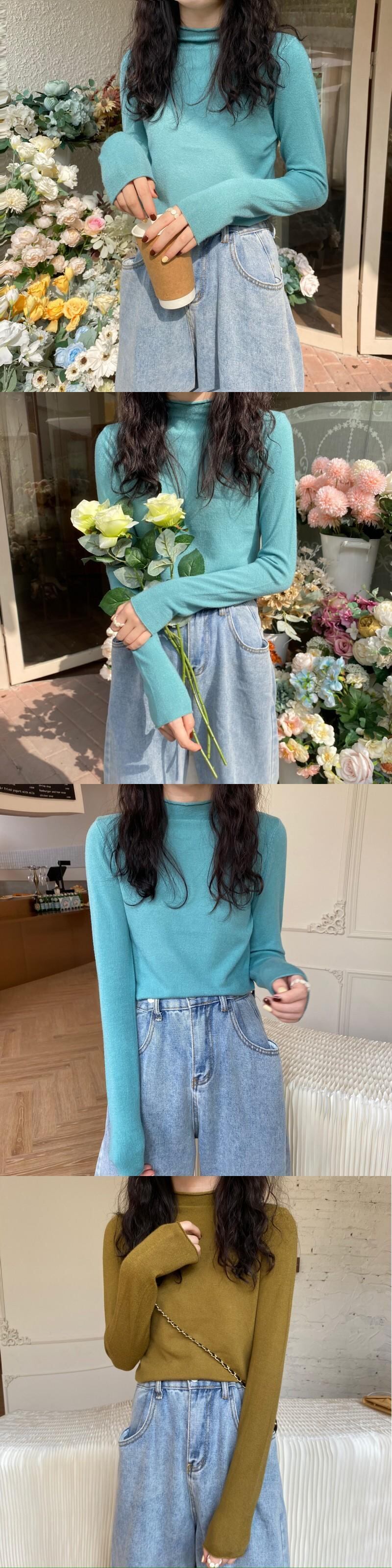 カラーシャツ スプリングオータムスリムTシャツ トップス ロング 春物 秋物 1号婦人25189708408
