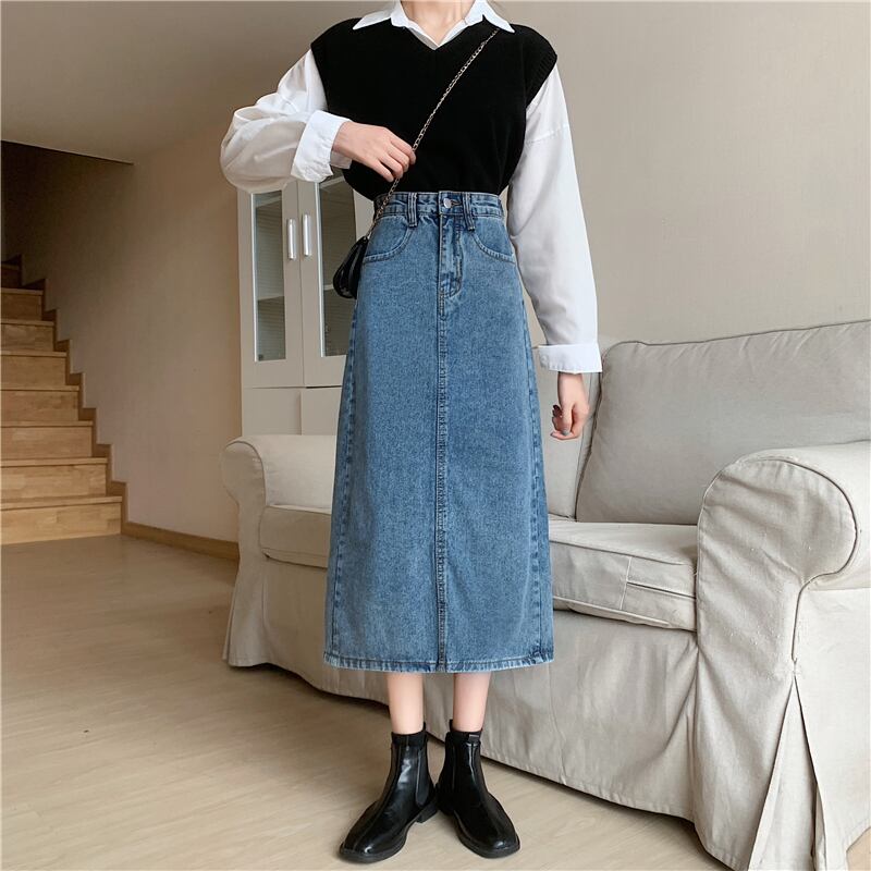 Aラインスカート スプリングスリットハイウェストウェスト薄手 春物 1号婦人28770873458
