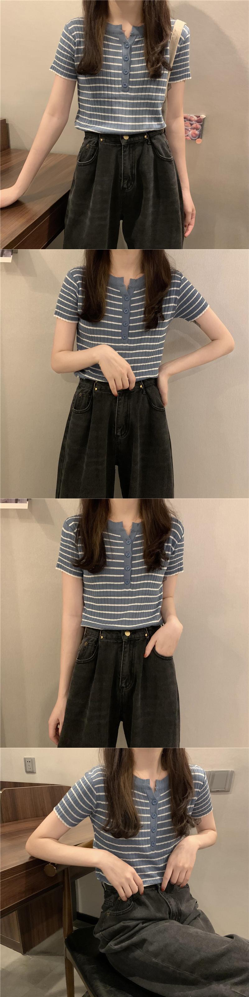 ストライプニットTシャツ シャツ スプリングサマースタイルトップス 春物 夏物 1号婦人96187166735