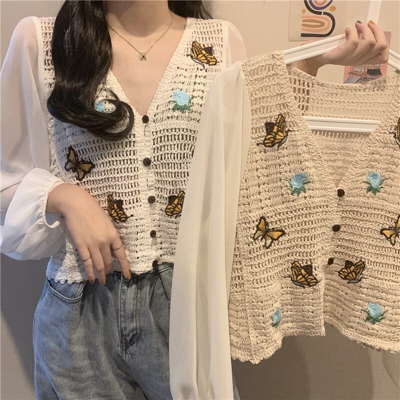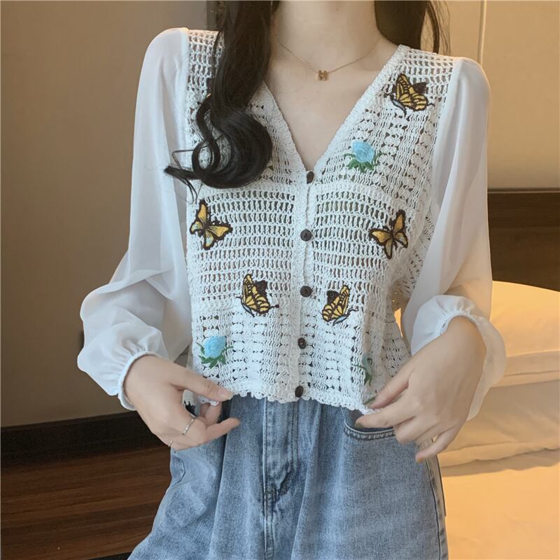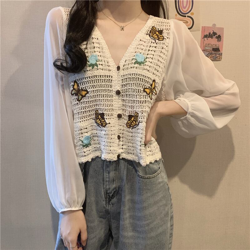 色:ホワイトバタフライカーディガン,アプリコットバタフライカーディガン