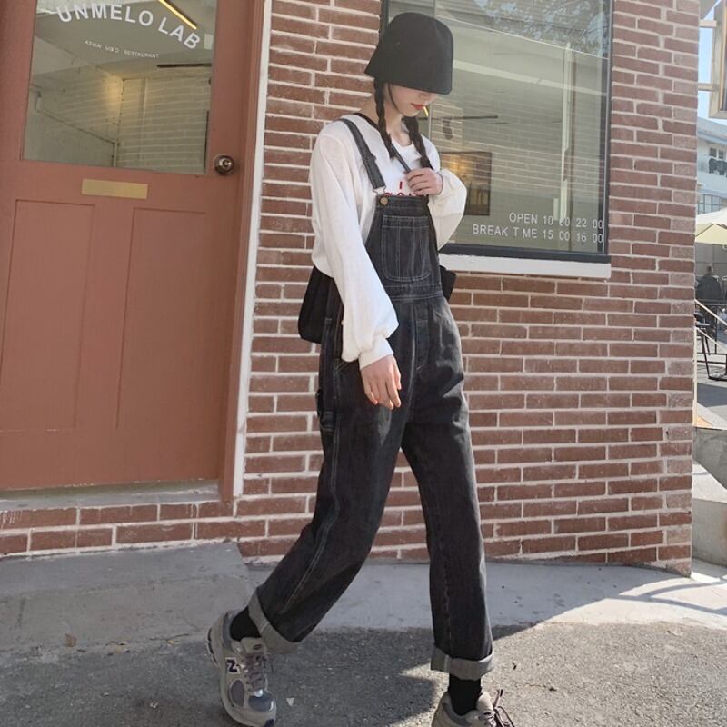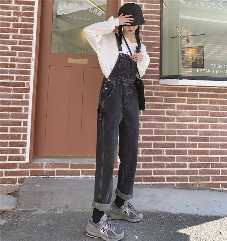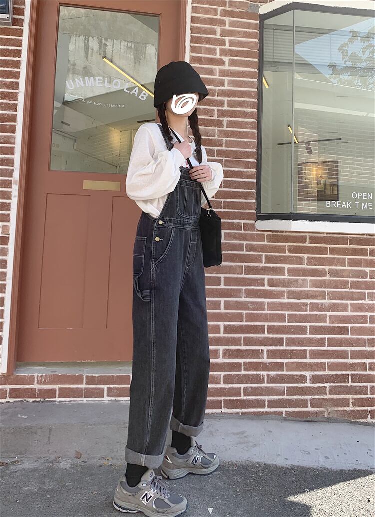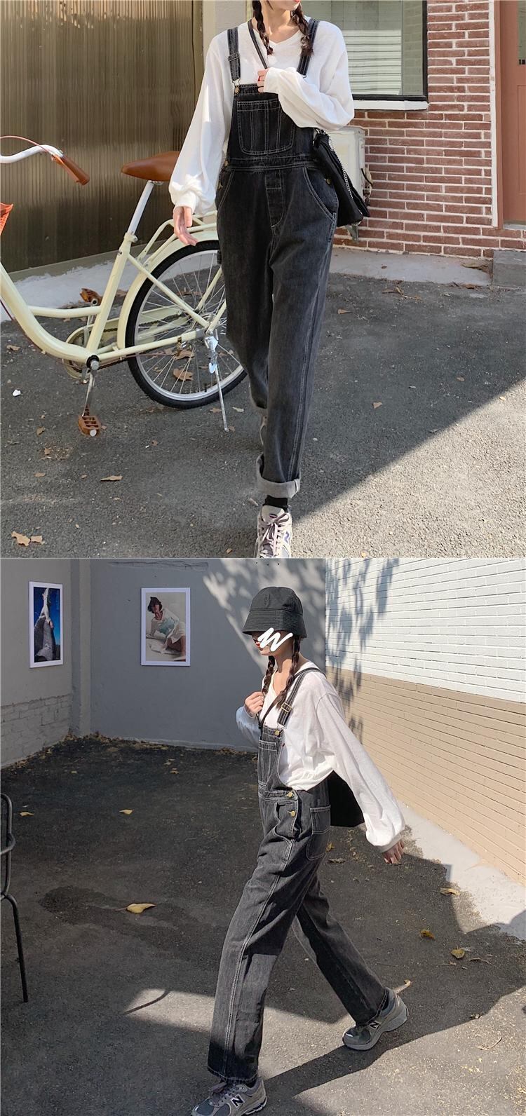 スプリングオータムスタイルルーズジーンズ ハイウェスト薄手オーバーオール 春物 秋物 1号婦人59753215776