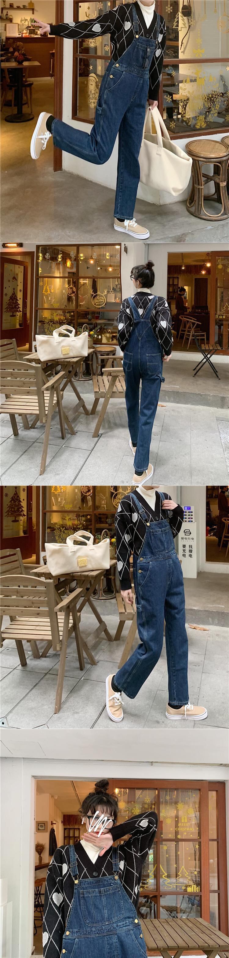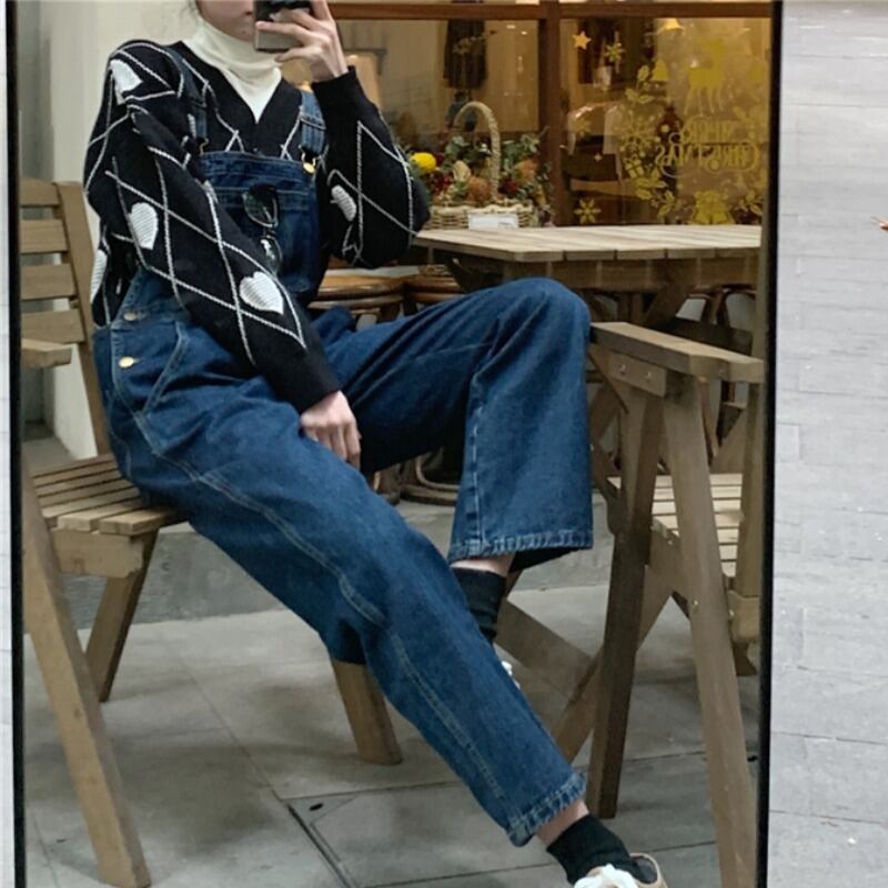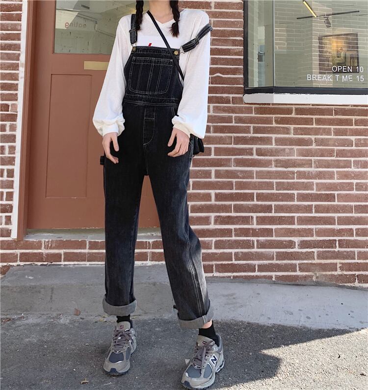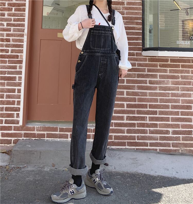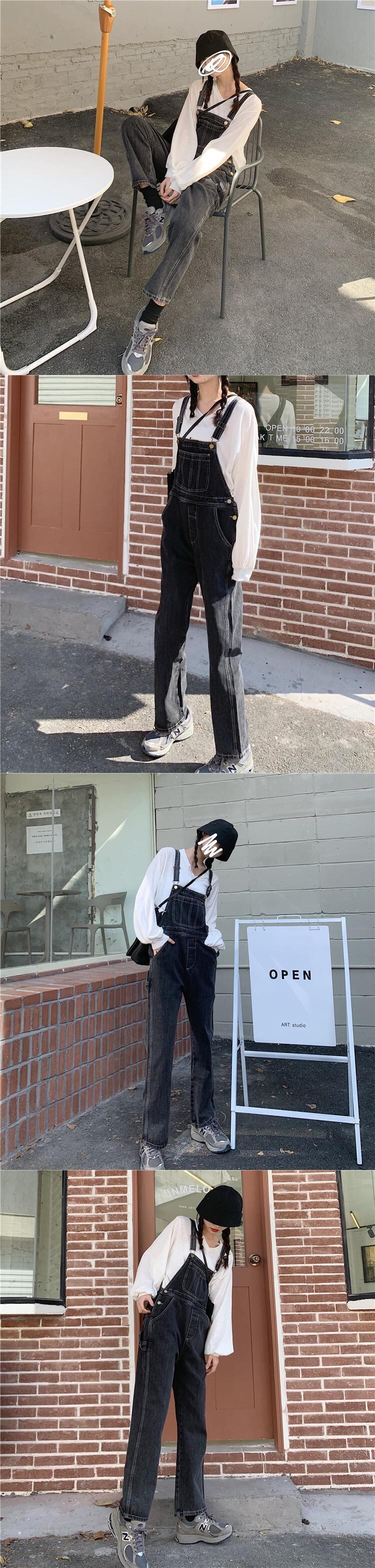 スプリングオータムスタイルルーズジーンズ ハイウェスト薄手オーバーオール 春物 秋物 1号婦人59753215776