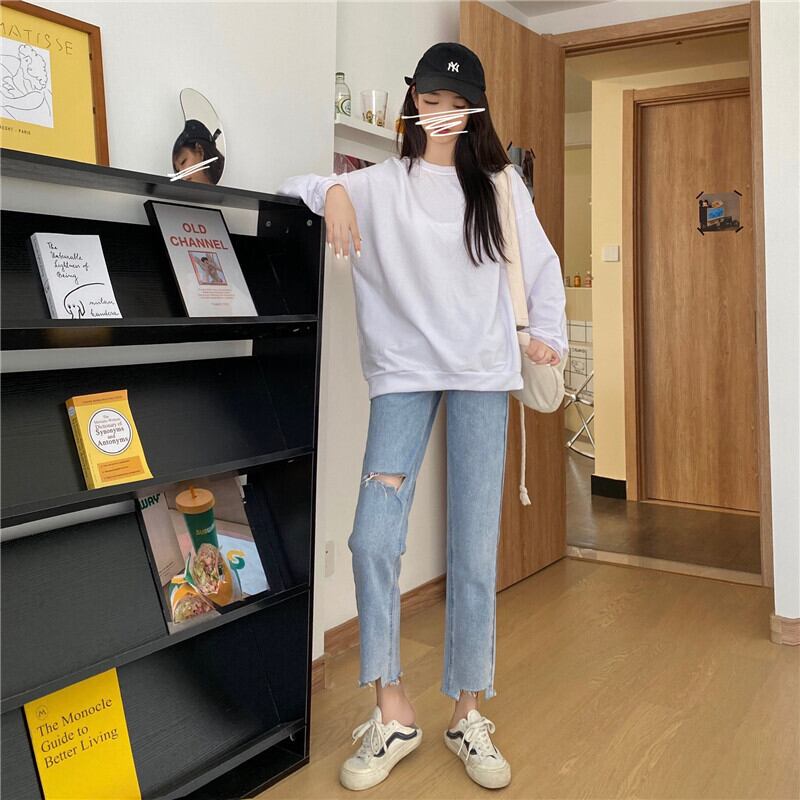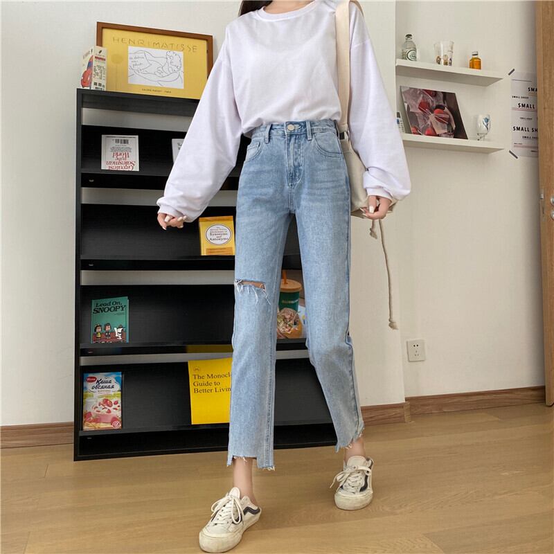 スプリングジーンズ ルーズハイウェストウェストパンツ 春物 1号婦人55379165663