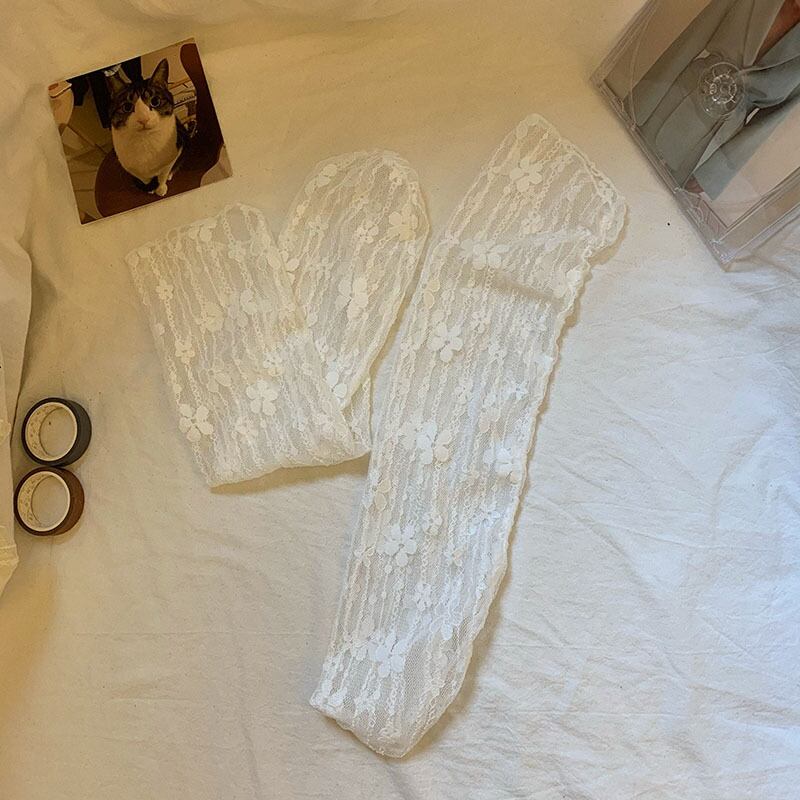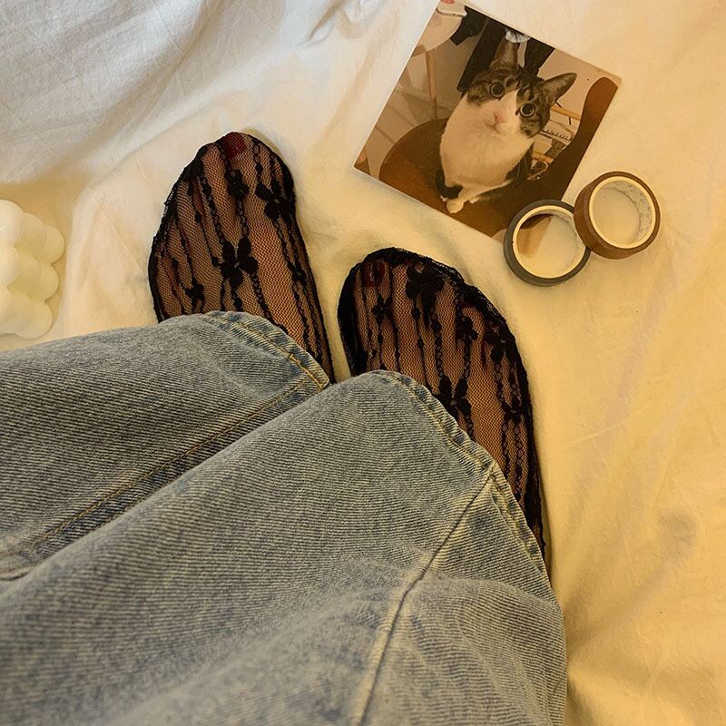 ジャカード薄手Flowerデザイン ソックス サマーレースメッシュショート 夏物 タイツ ストッキング フラワーデザイン 1号婦人39184183235