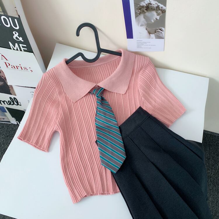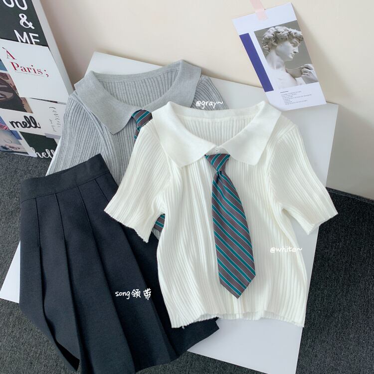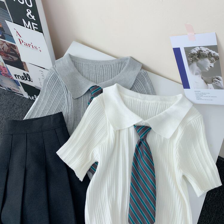 スタイルカラーショートセーター 薄手レディースサマーホワイトTシャツ トップス 夏物 1号婦人44800598291