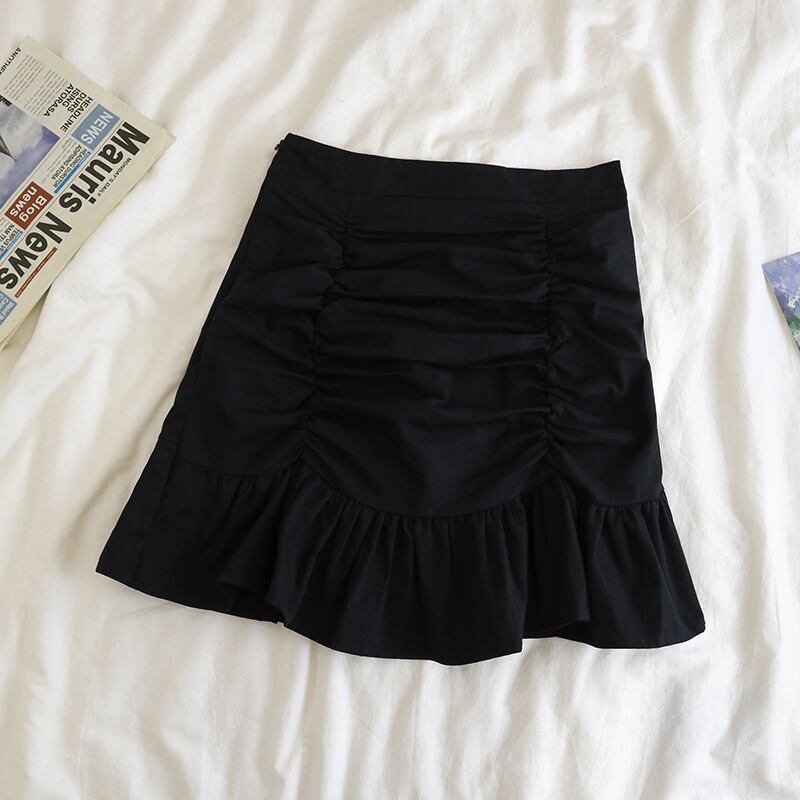 Aラインスカート スプリングハイウェストブラックショート薄手プリーツ 春物 1号婦人94255038369