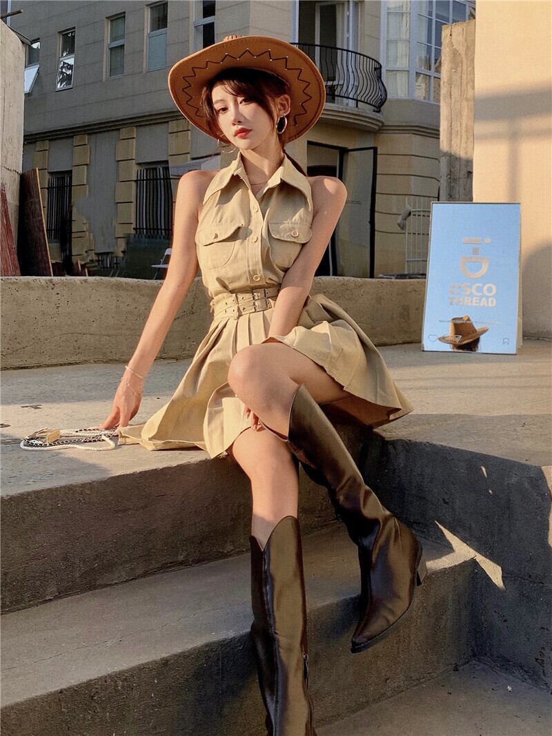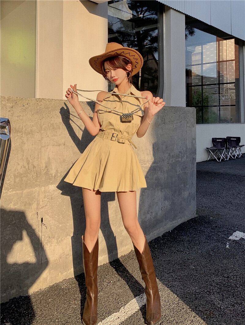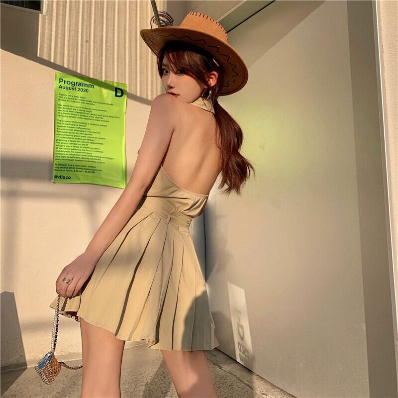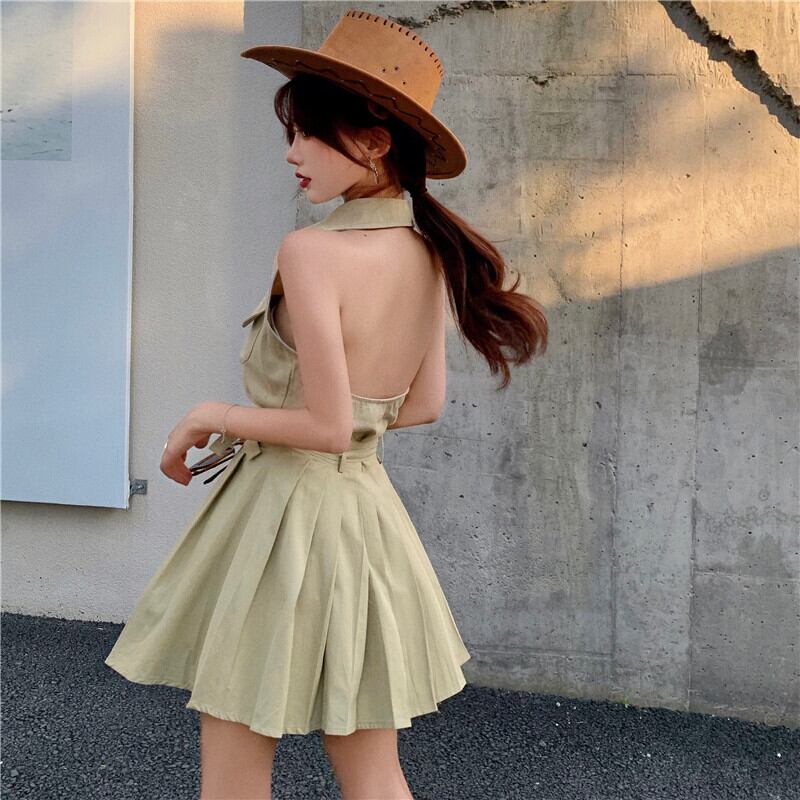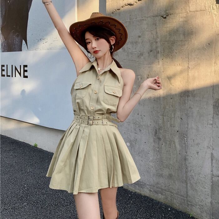 カジュアルレディースサマーホルタープリーツスカート 夏物 1号婦人36982257160