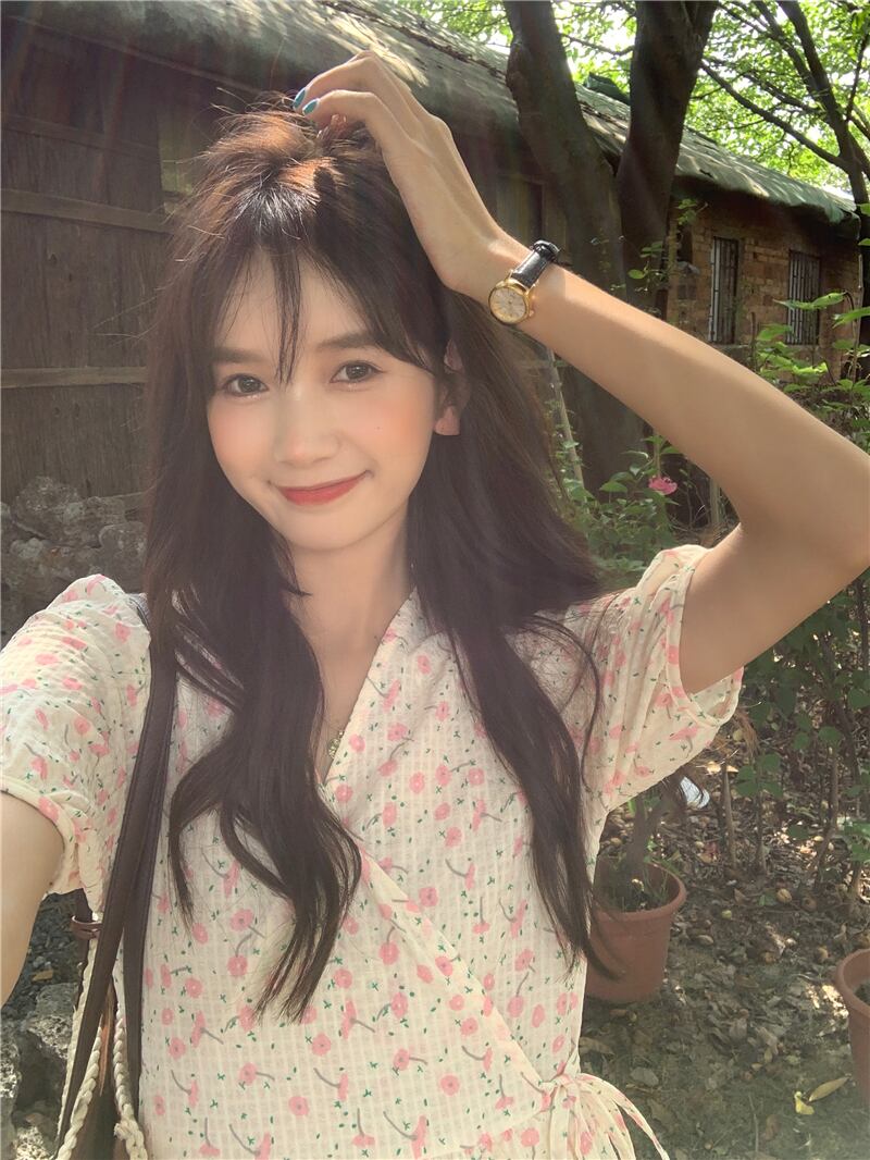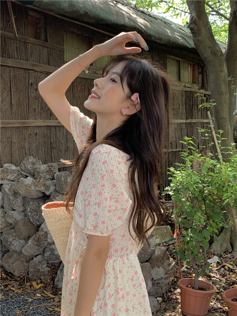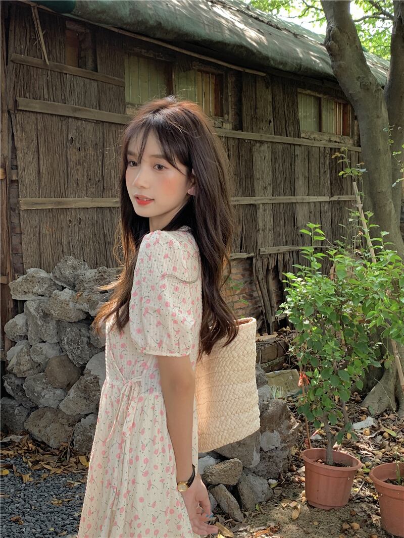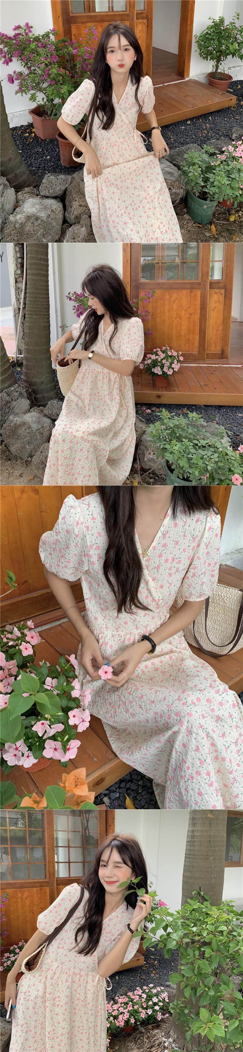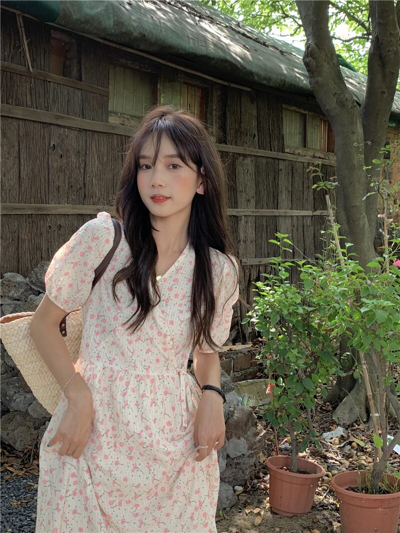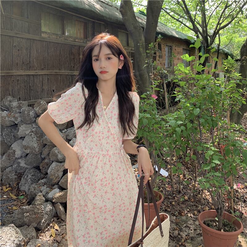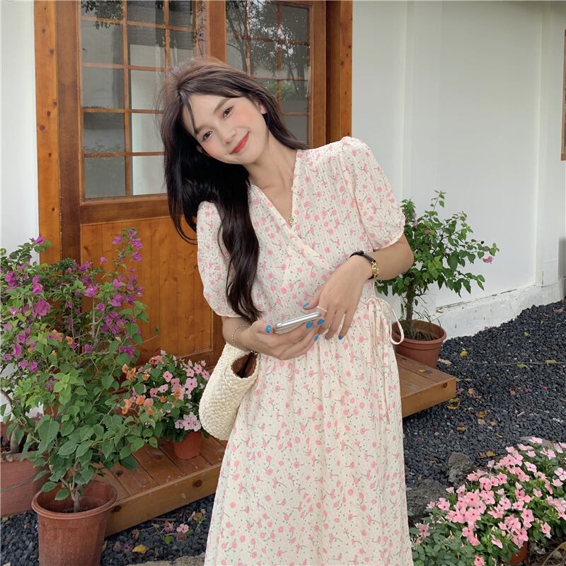 ドレス サマースタンダードウェストVネックフローラルスカート レトロ 夏物 花柄 1号婦人67462857017