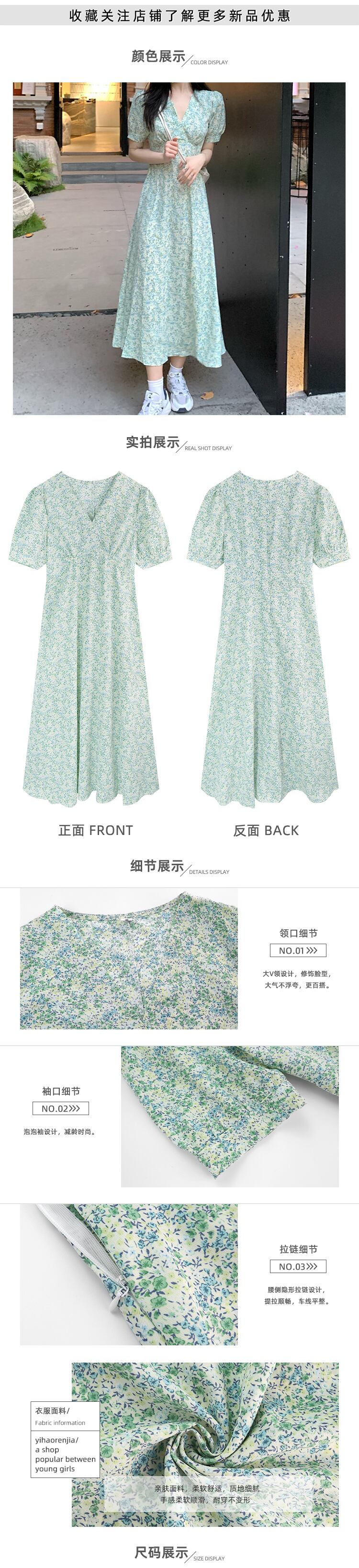 フローラルドレス サマーウェストVネックスリーブスカート Aライン 夏物 花柄 1号婦人54409996158