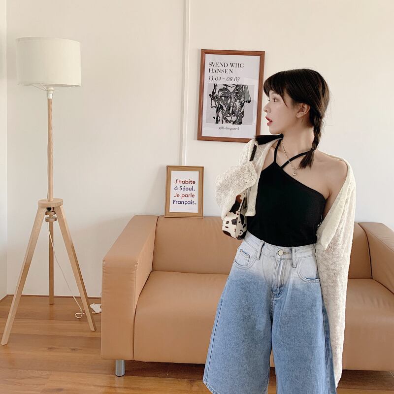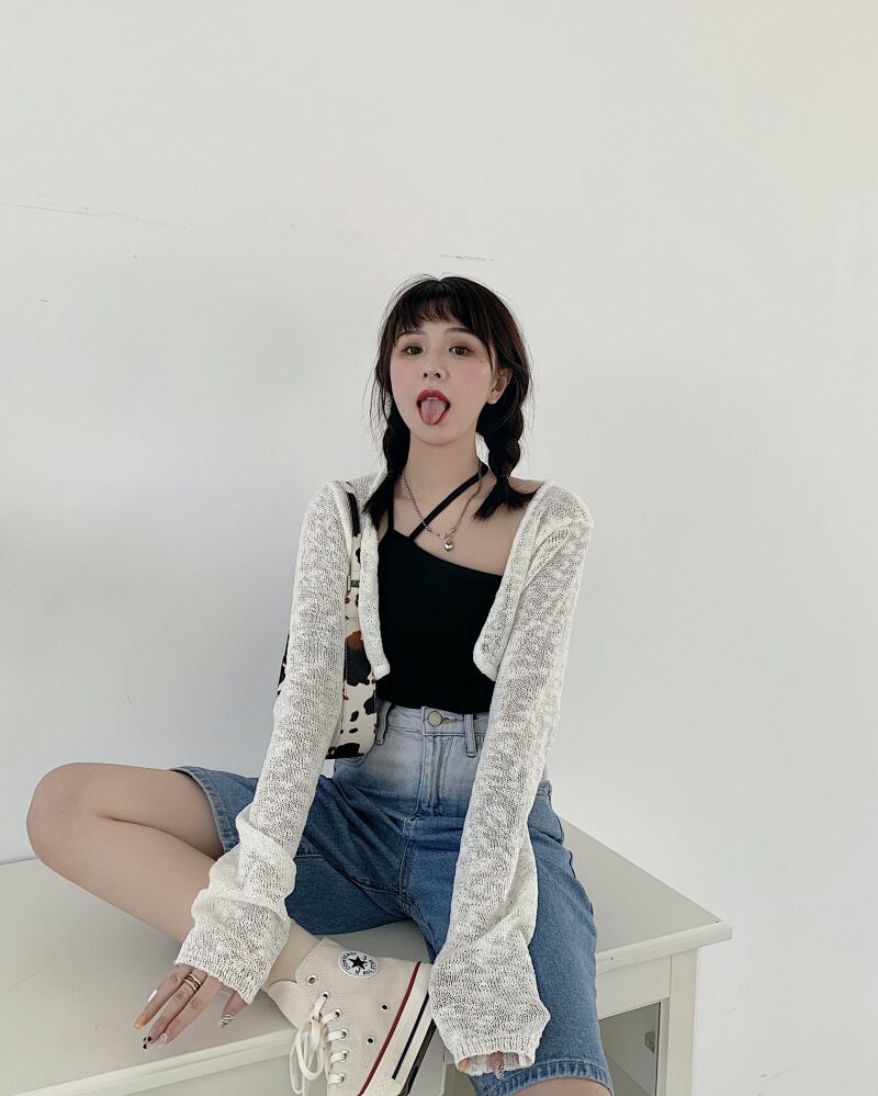 色:黒のホルターベスト,ニットショートコート