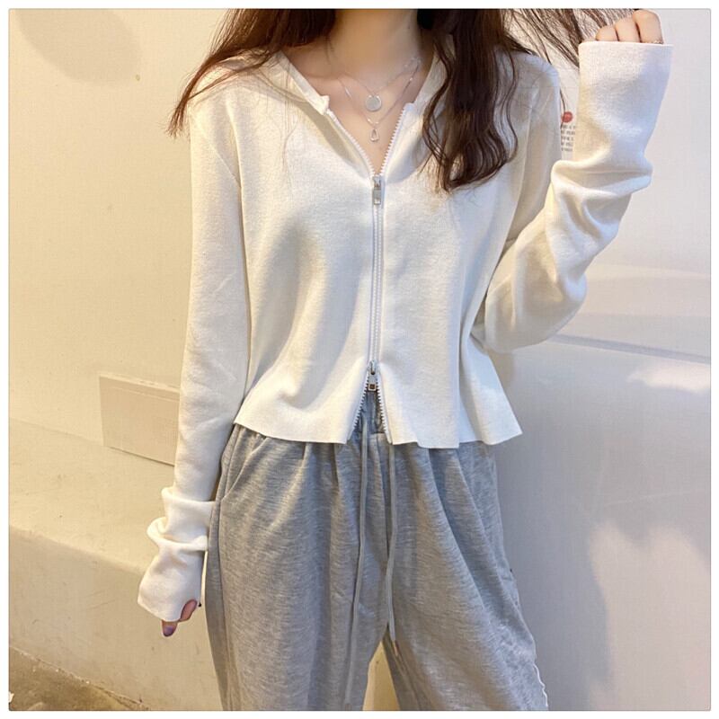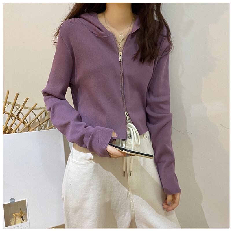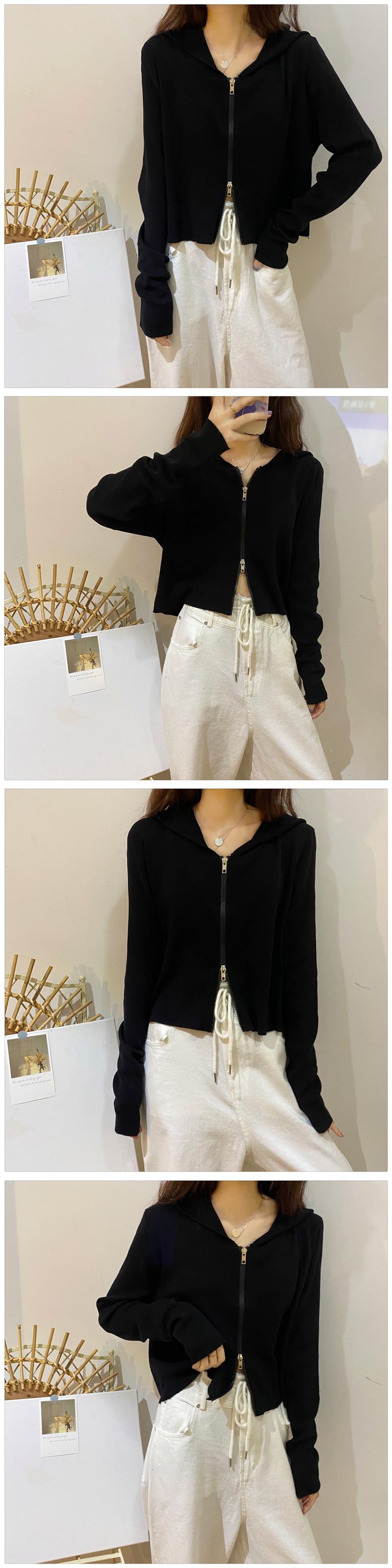 カーディガンフードセーター コート スプリング薄手ダブルジッパーショートトップス ロング 春物 1号婦人33276966007