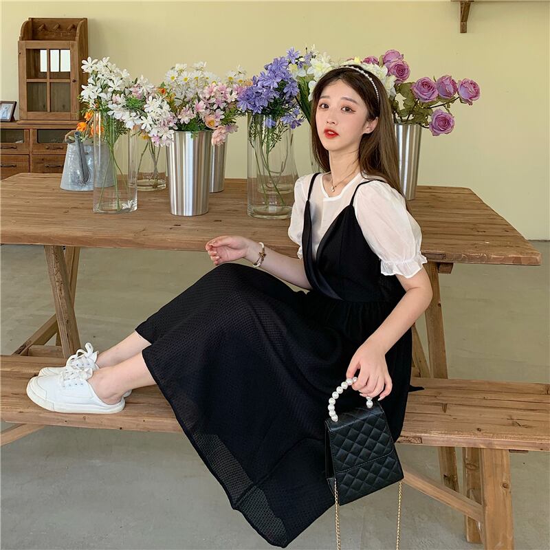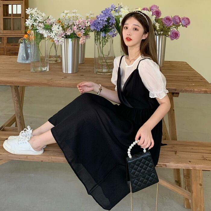 スタンダードドレス サマーウェストブラックロングスカート レトロ 夏物 1号婦人68712543457