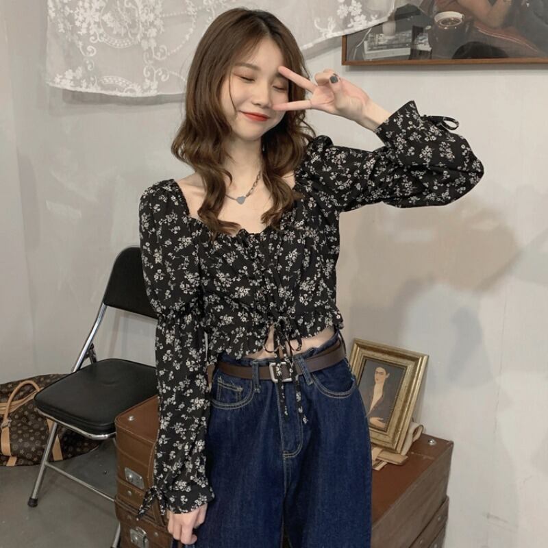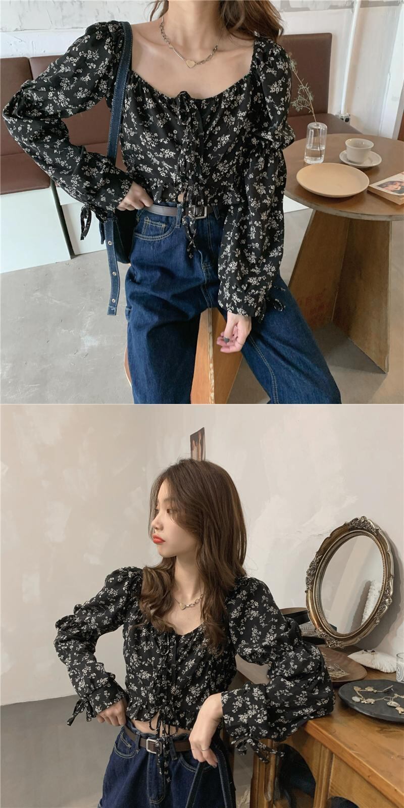 カラーフローラルシャツ スプリングスタンダードスタイルトップス ロング レトロ 春物 花柄 スクウェア 1号婦人16322954324