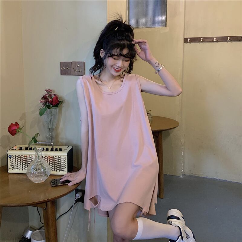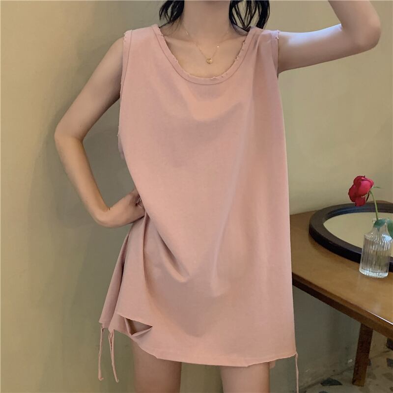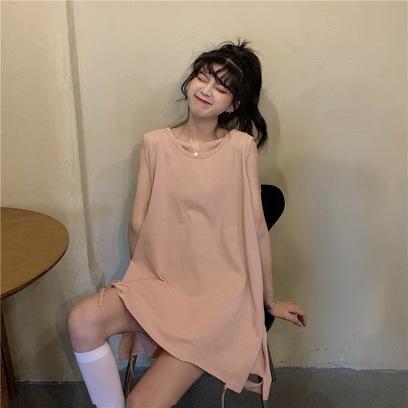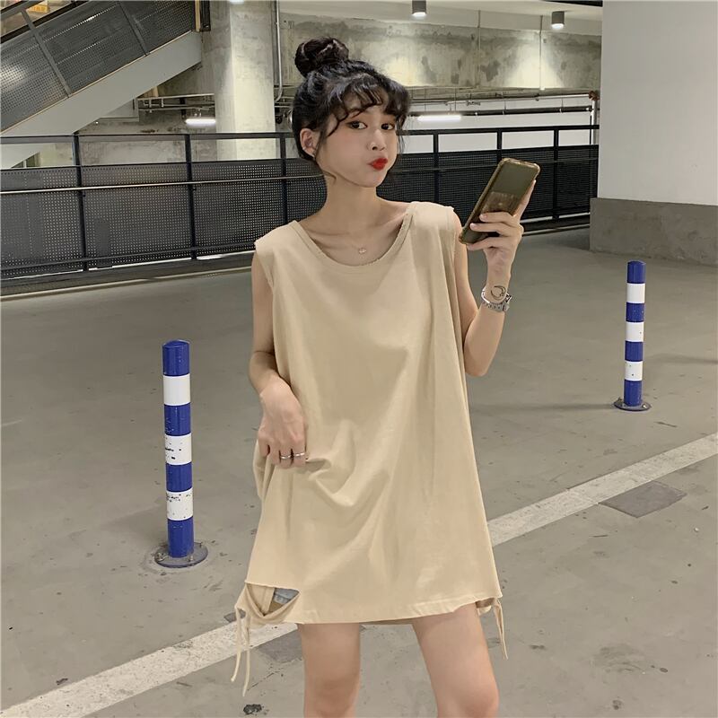 薄手サマールーズラウンドネックノースリーブTシャツ トップス 夏物 Oネック 1号婦人12614117803